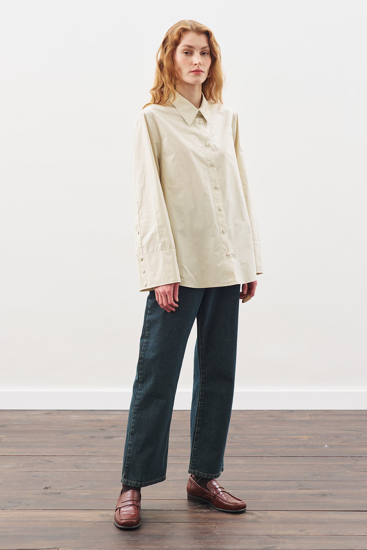 Gömlek yaka, uzun kol,ara boy,düğmeli kapama, normal kalıp.