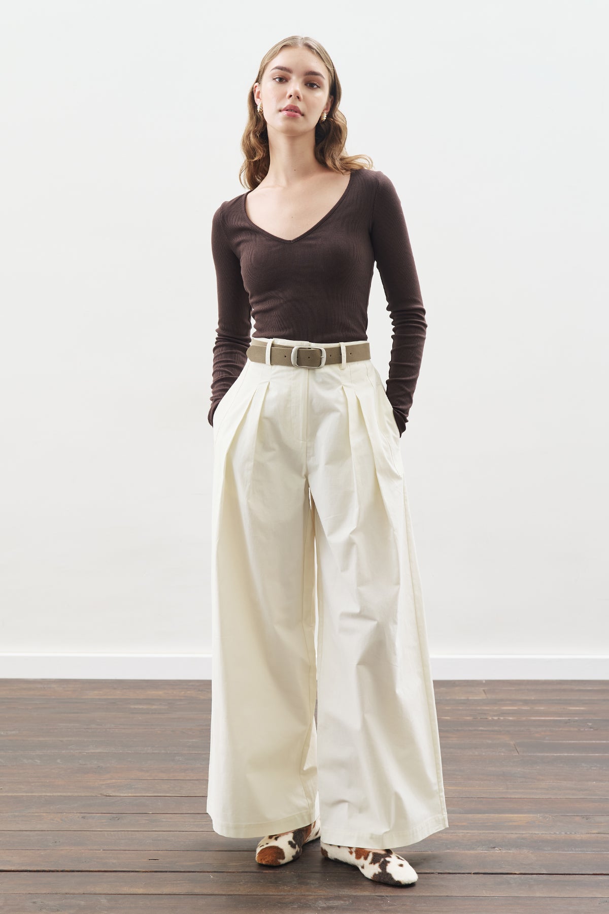 Pleated Gabardine Trousers Ecru