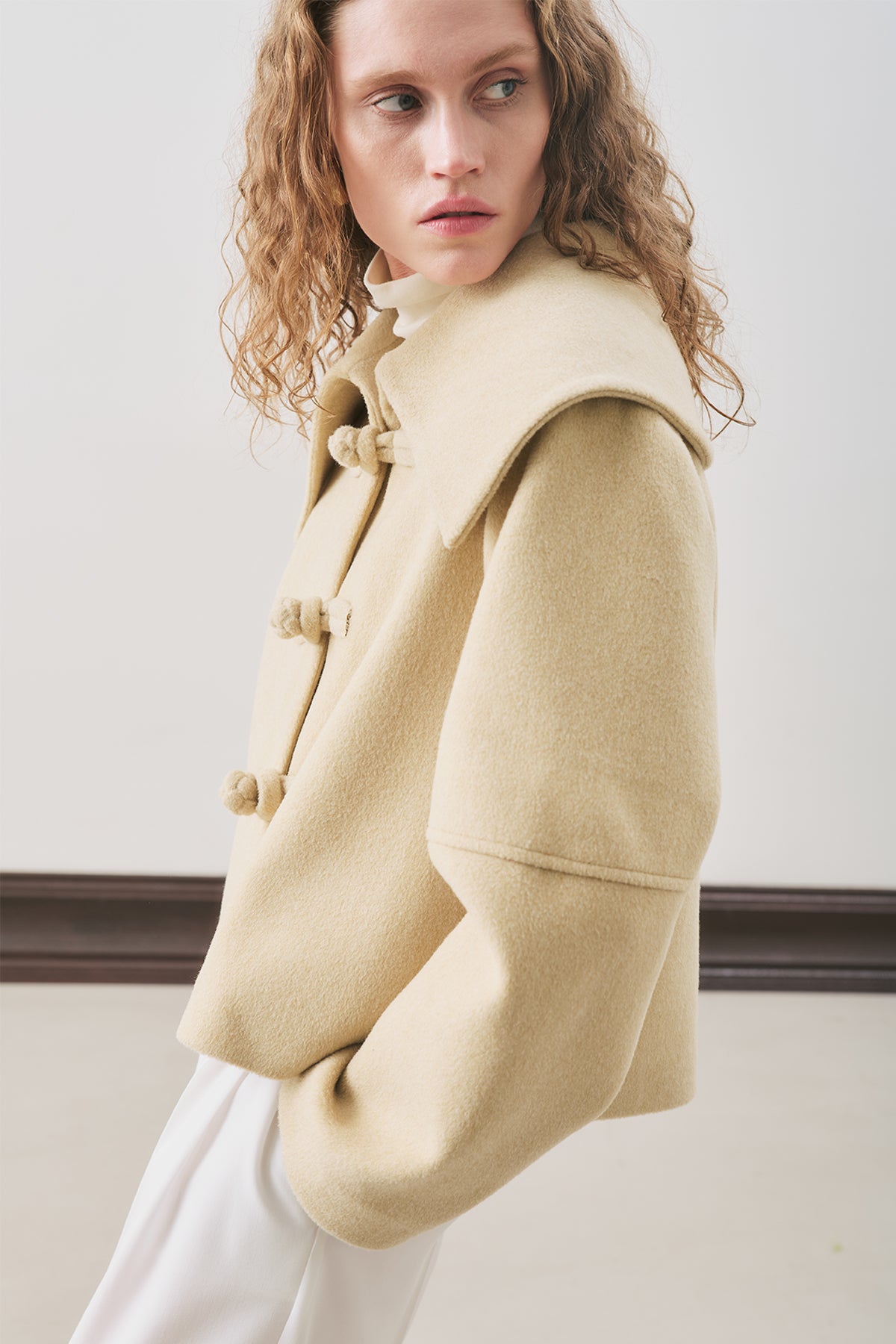 Normal kalıp,geniş yakalı,uzun kol,yaka ve düğme detaylı,crop boy,düğmeli kapama.