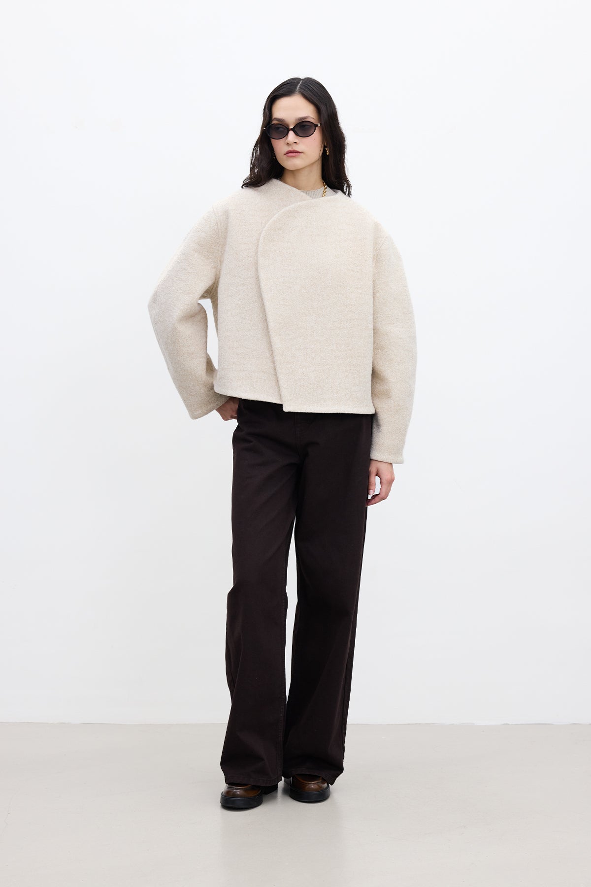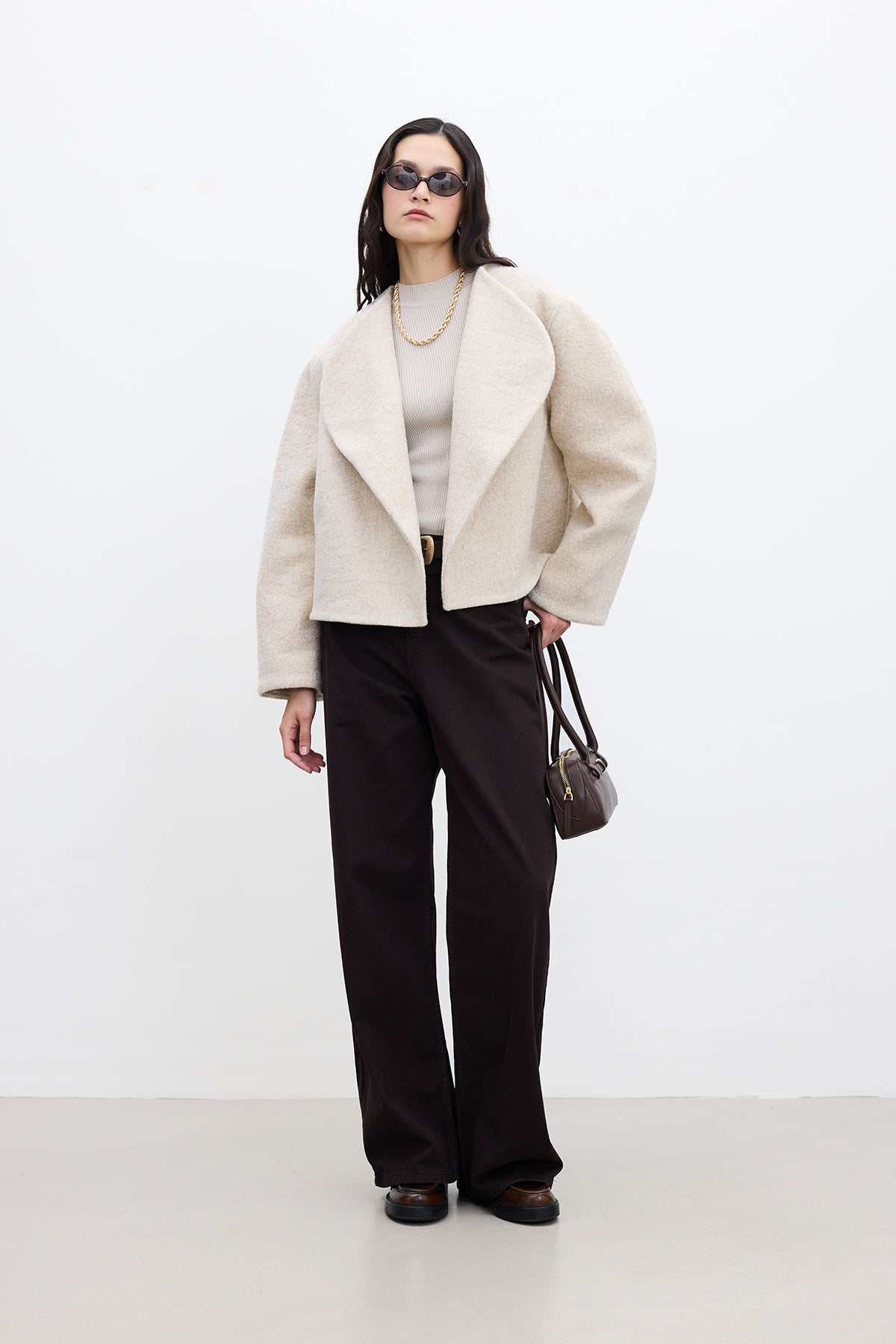 Featuring a wide collar that adds a touch of elegance, complemented by long sleeves for warmth. Fully lined for comfort and crafted from premium wool fabric, this coat combines style and functionality, making it a must-have for the colder months.