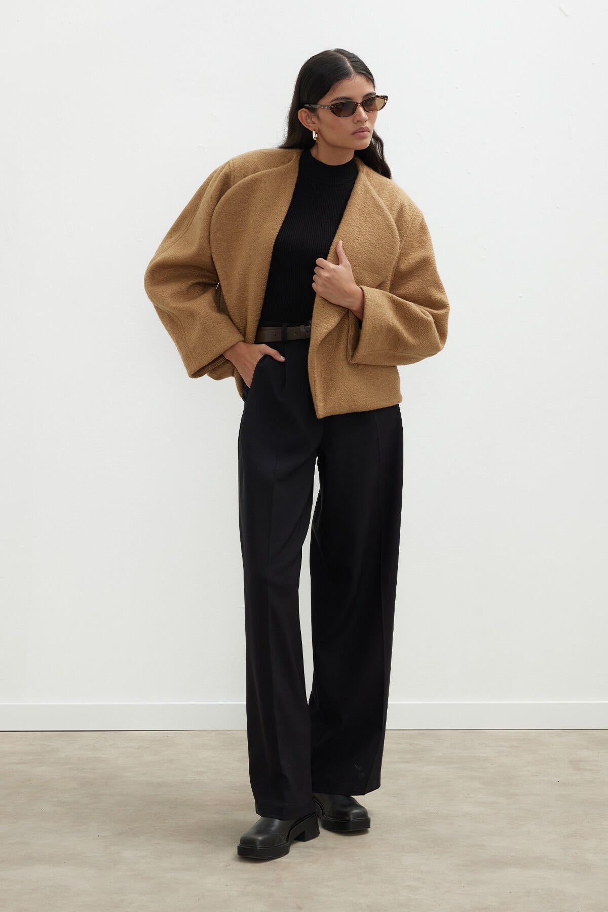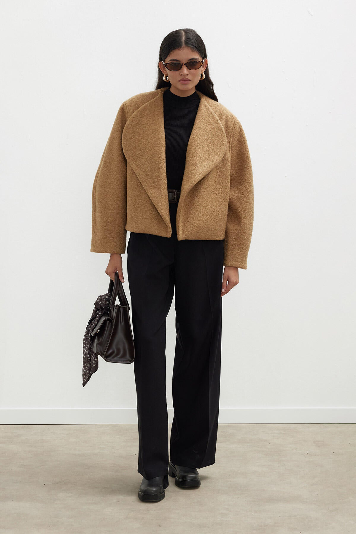 Featuring a wide collar that adds a touch of elegance, complemented by long sleeves for warmth. Fully lined for comfort and crafted from premium wool fabric, this coat combines style and functionality, making it a must-have for the colder months.