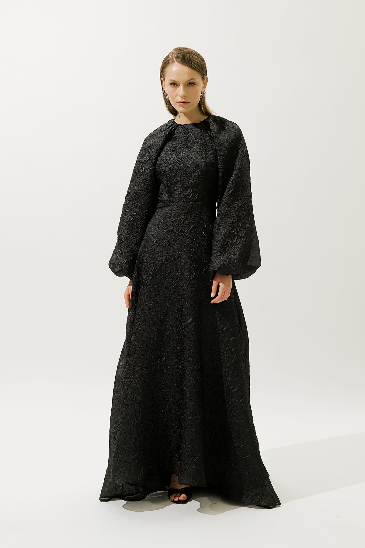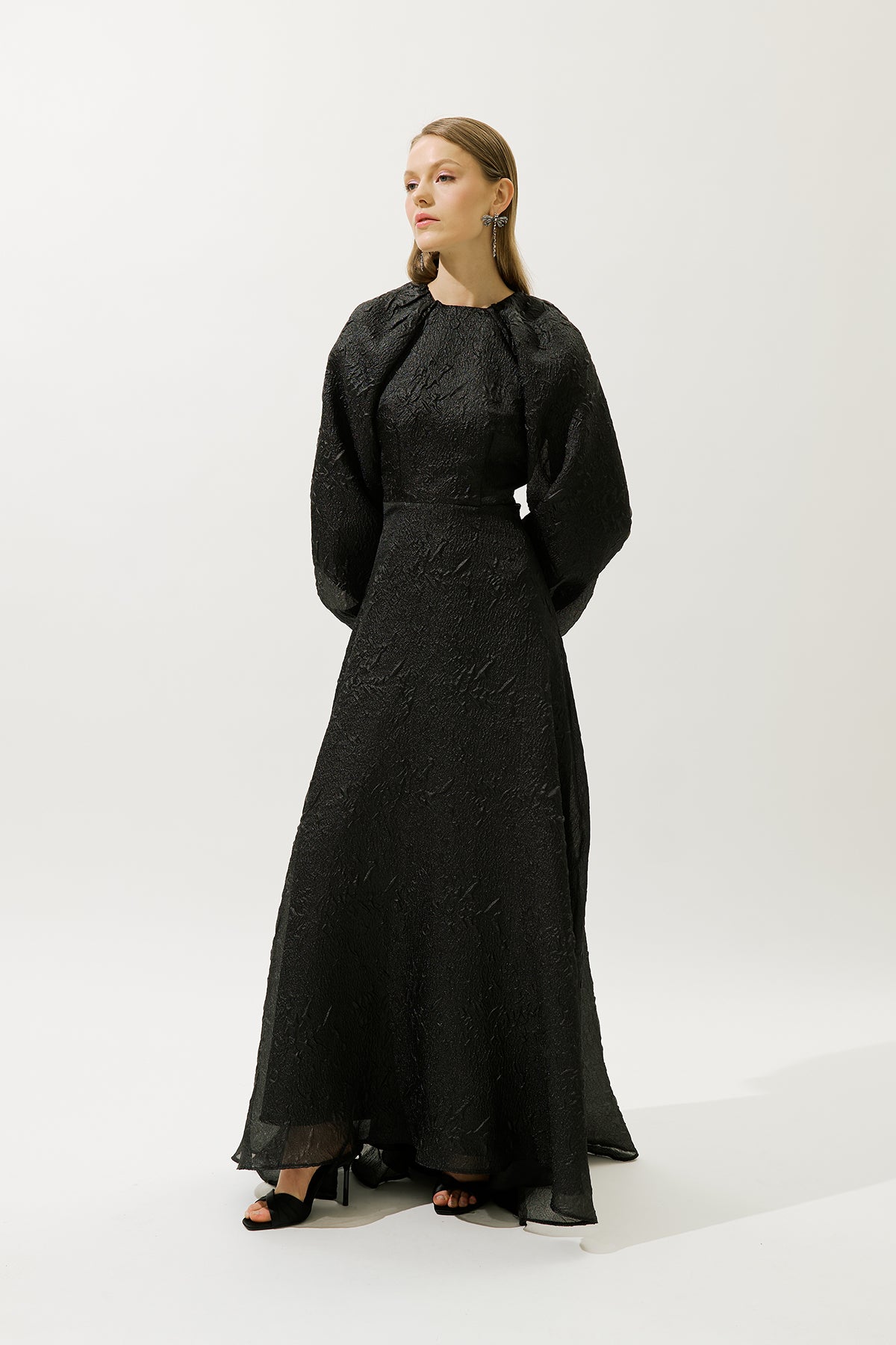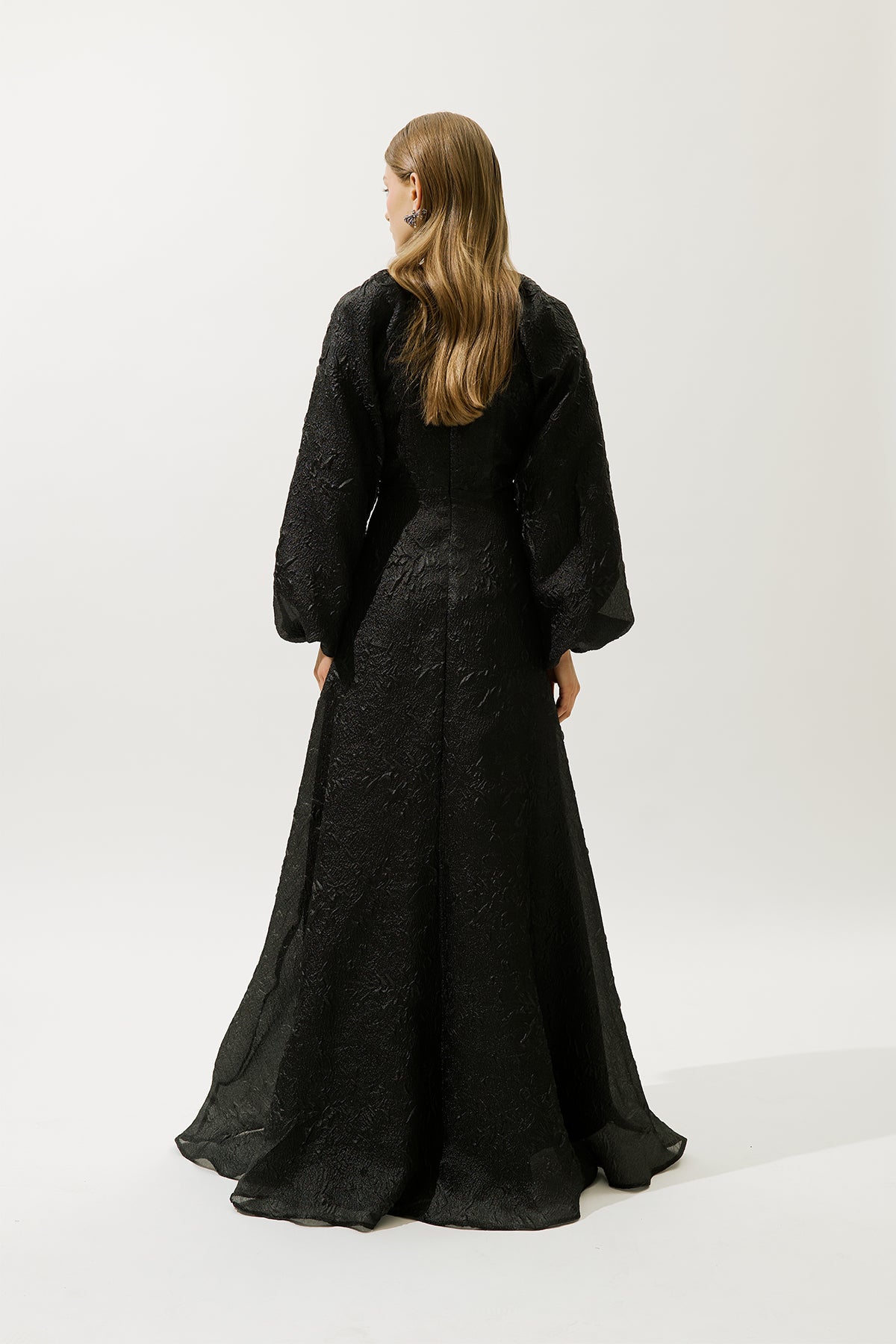 Jacquard Organza Evening Dress Black