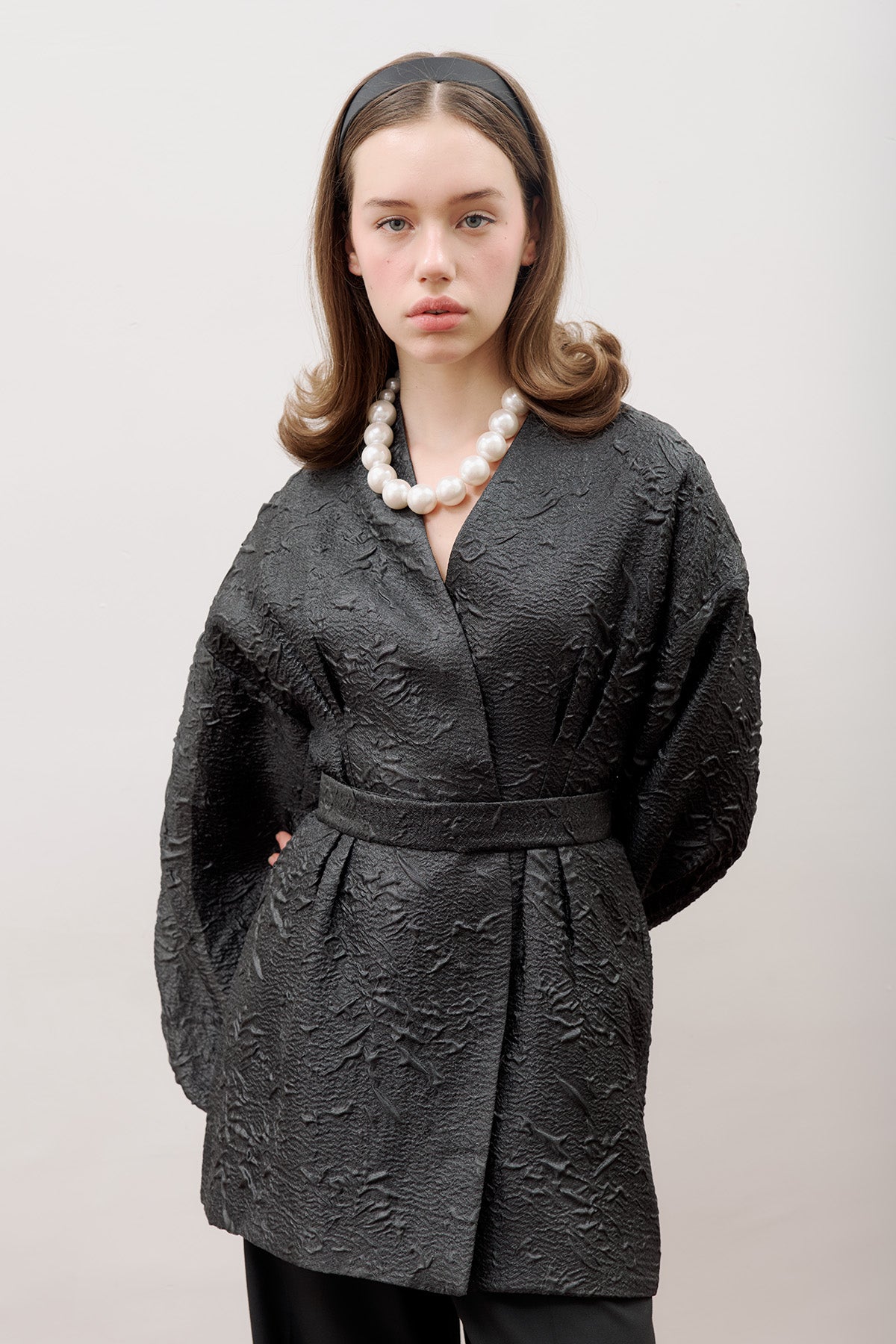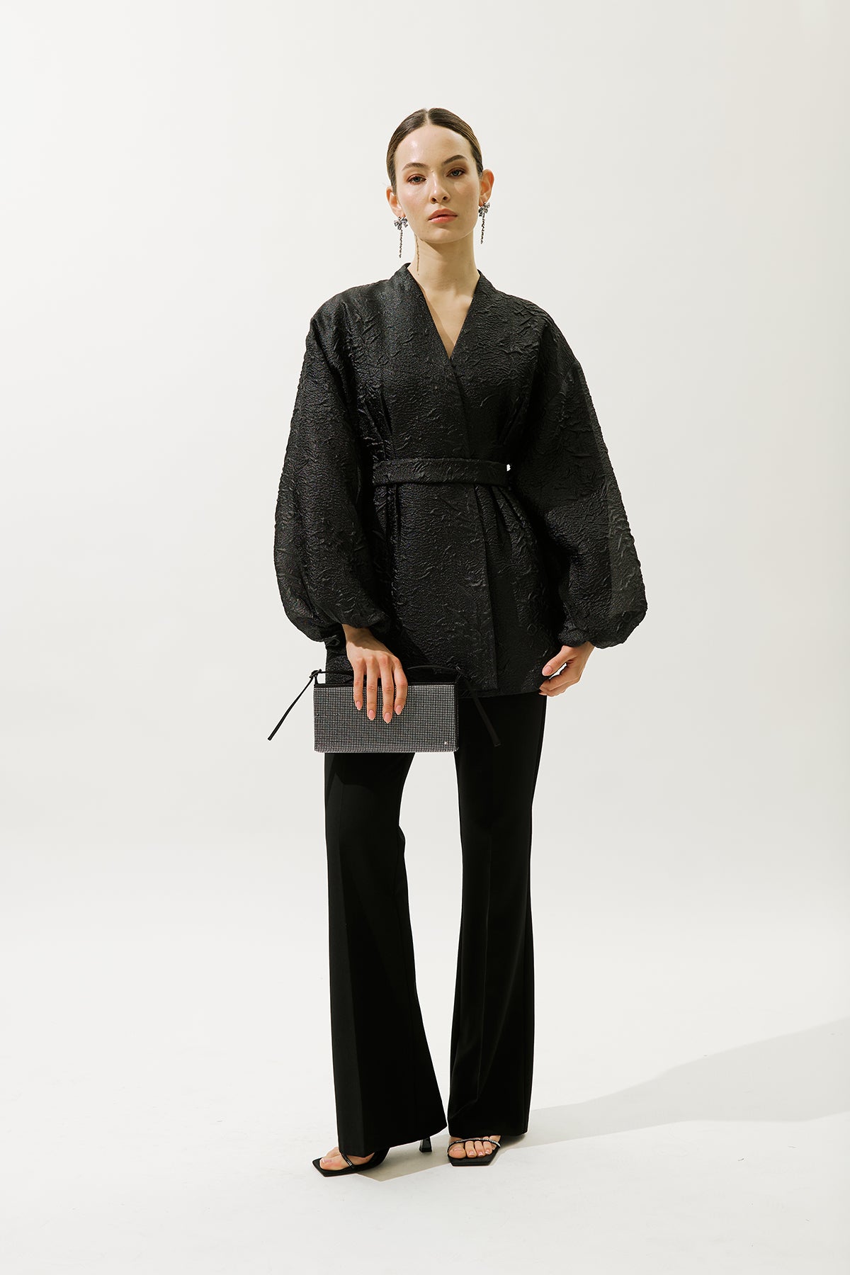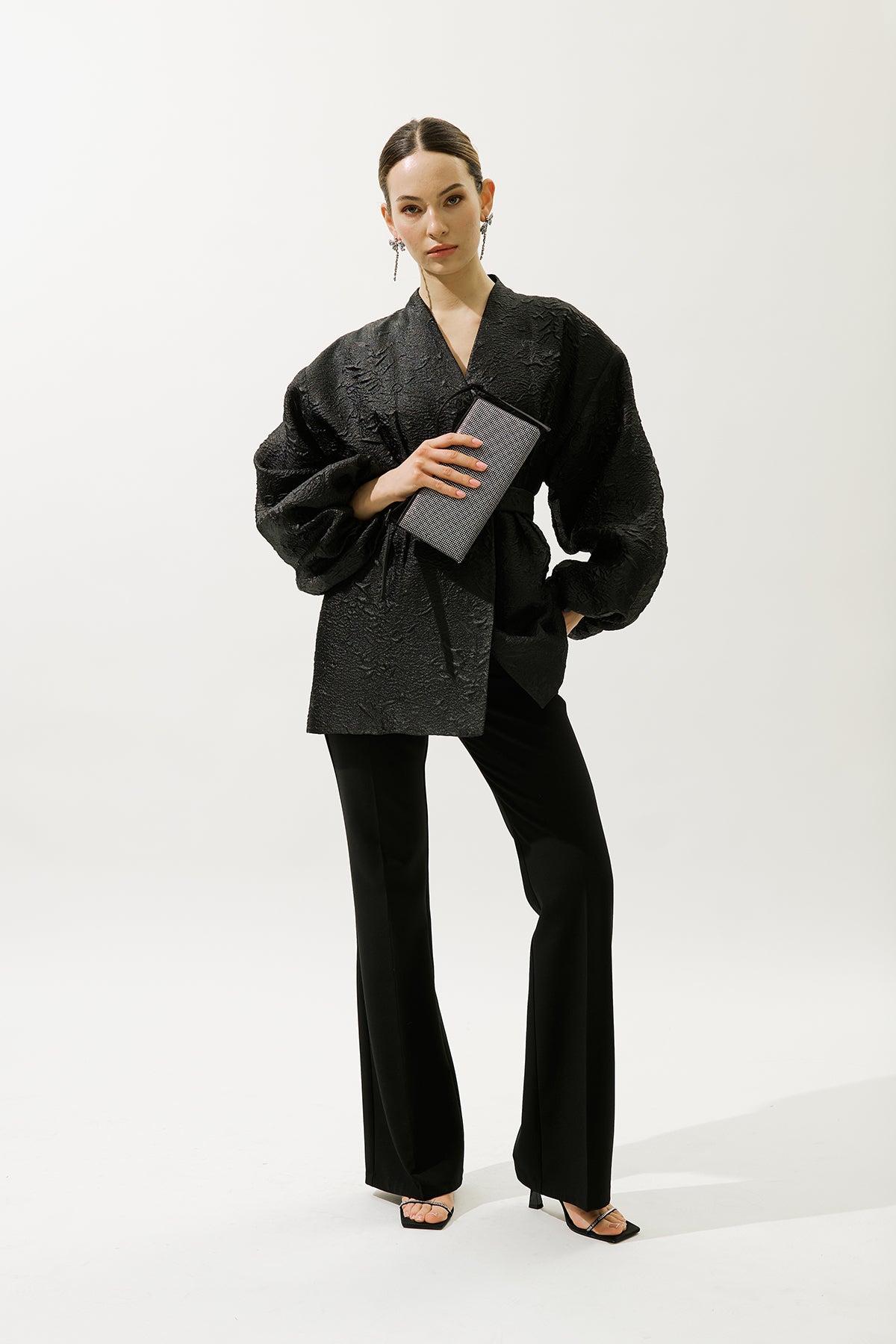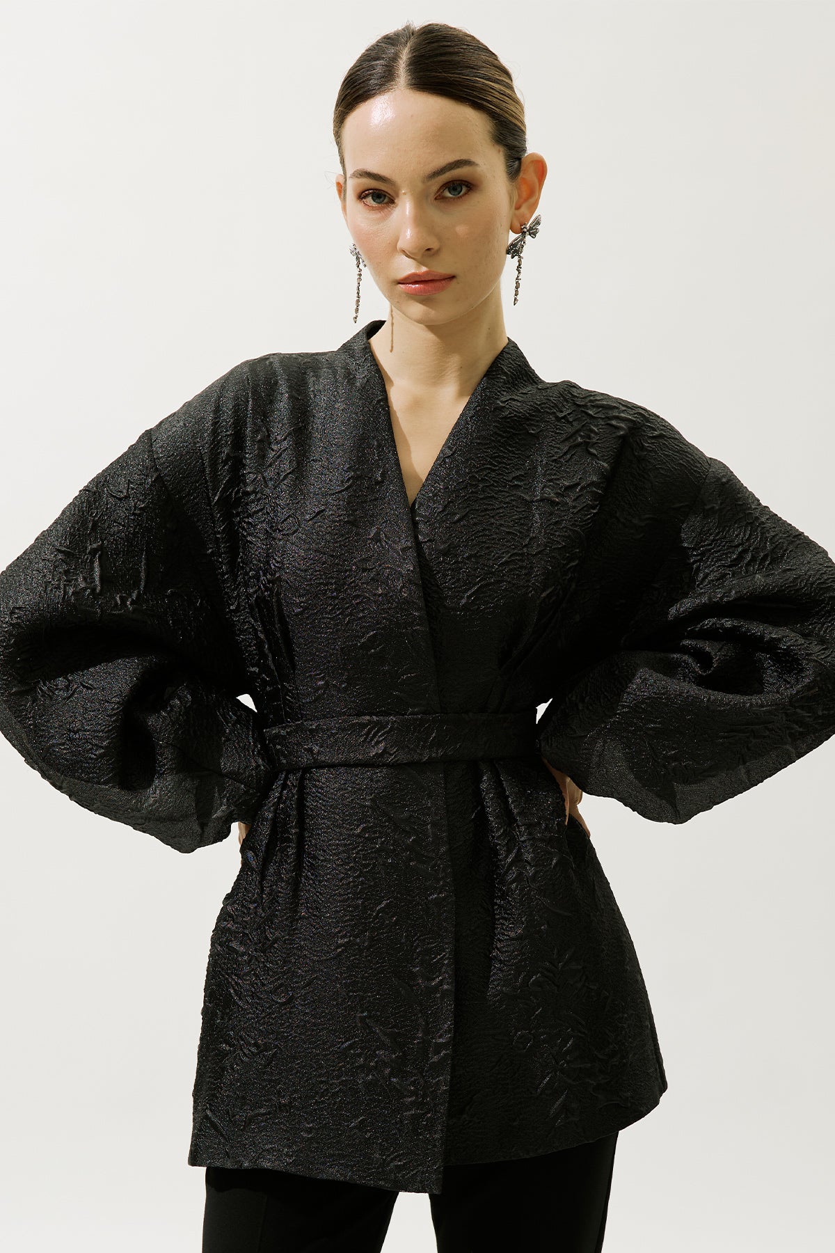 Jacquard Organza Kimono Black