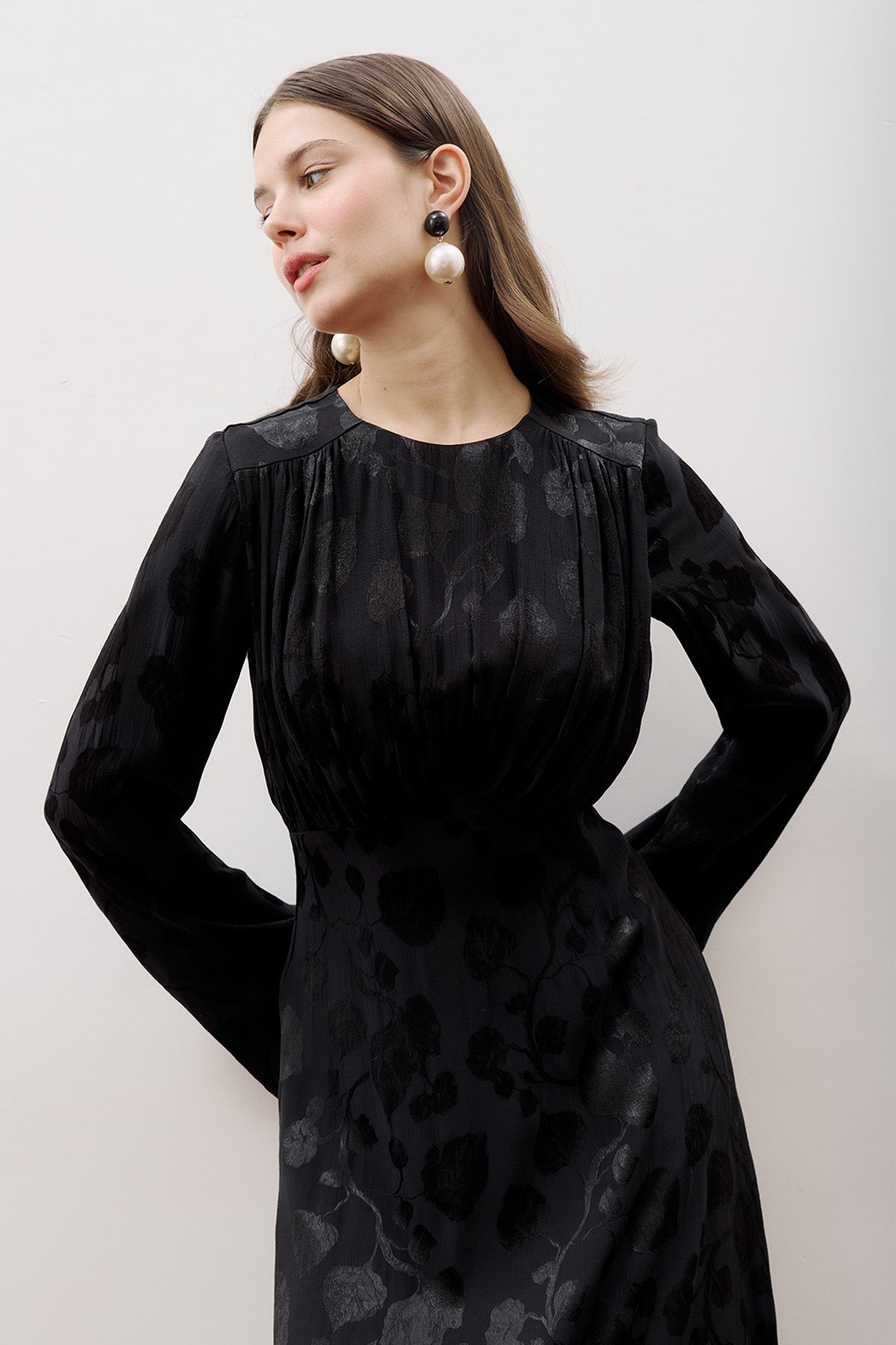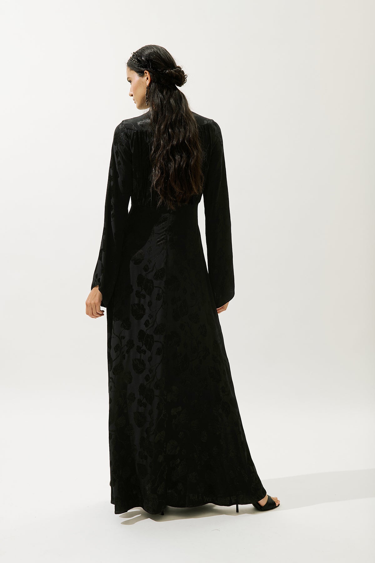 Jacquard Satin Evening Dress Black