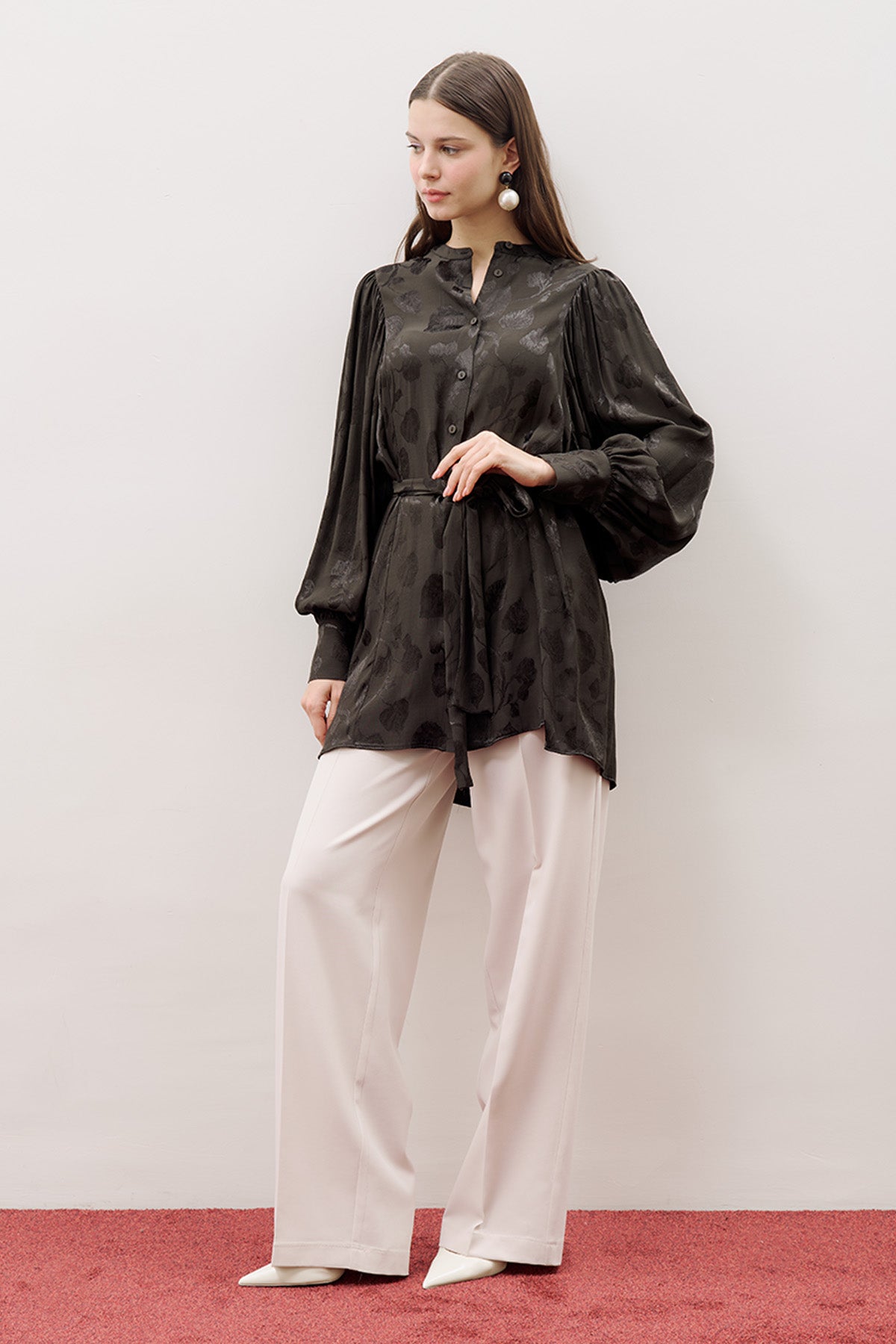 Jacquard Satin Shirt Black