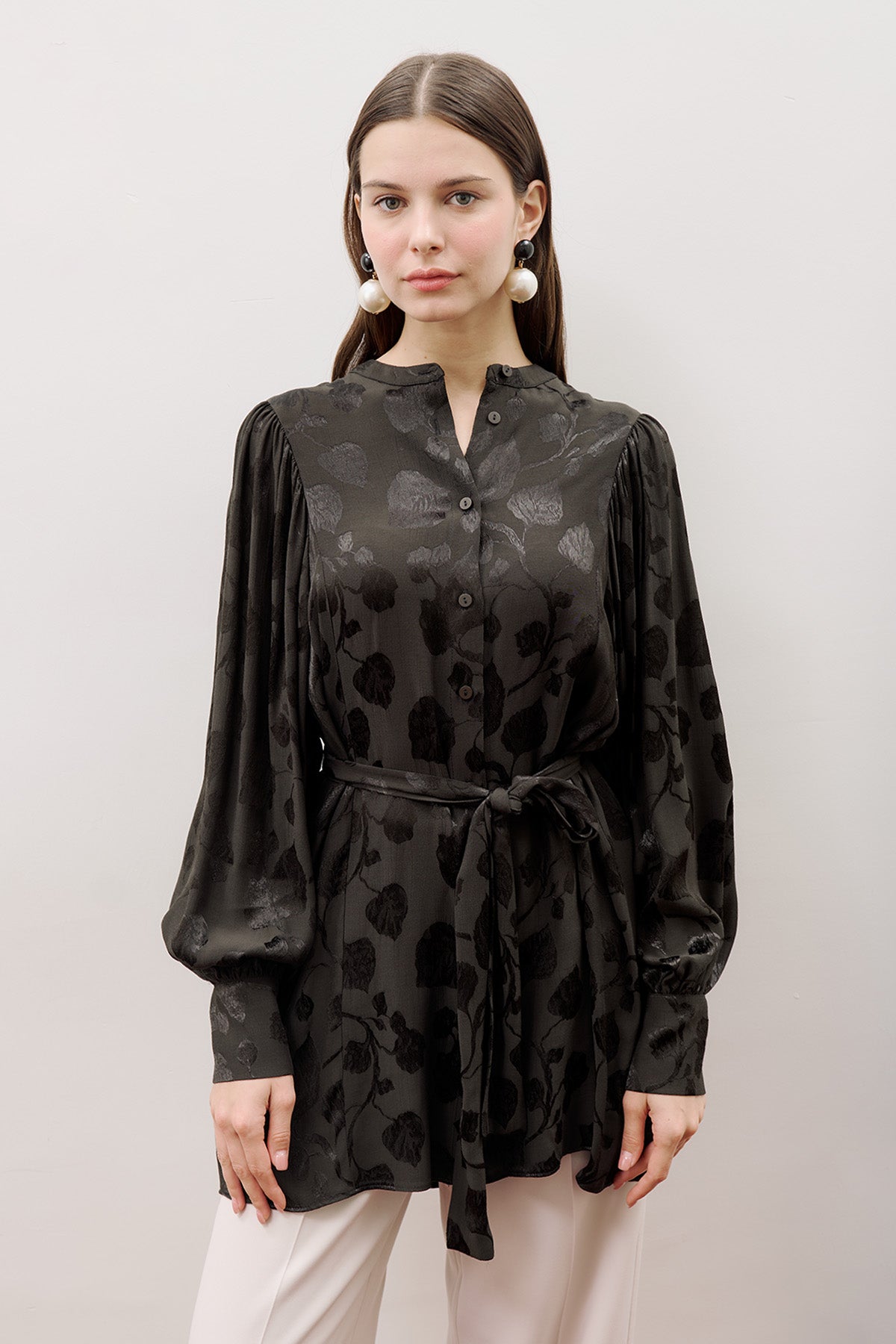Mandarin Collar Tunic with Button Closure
