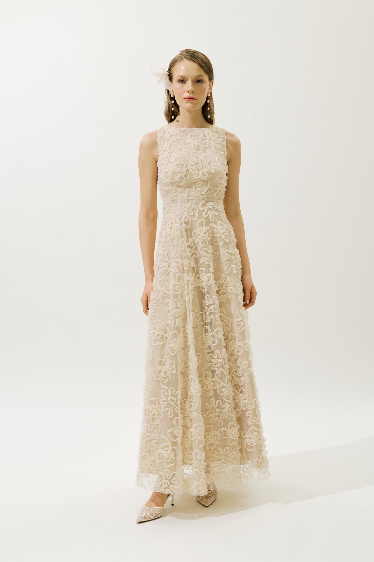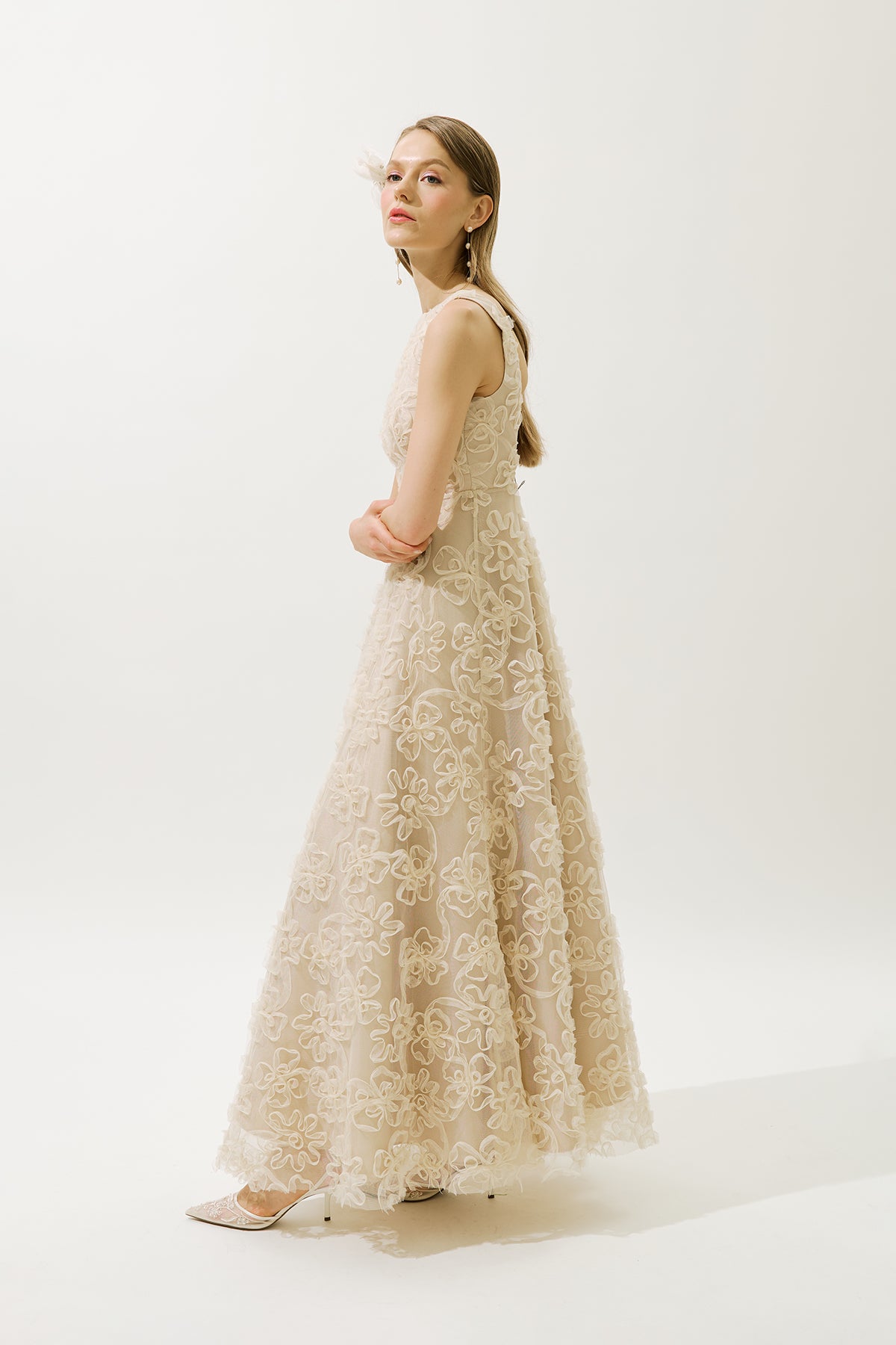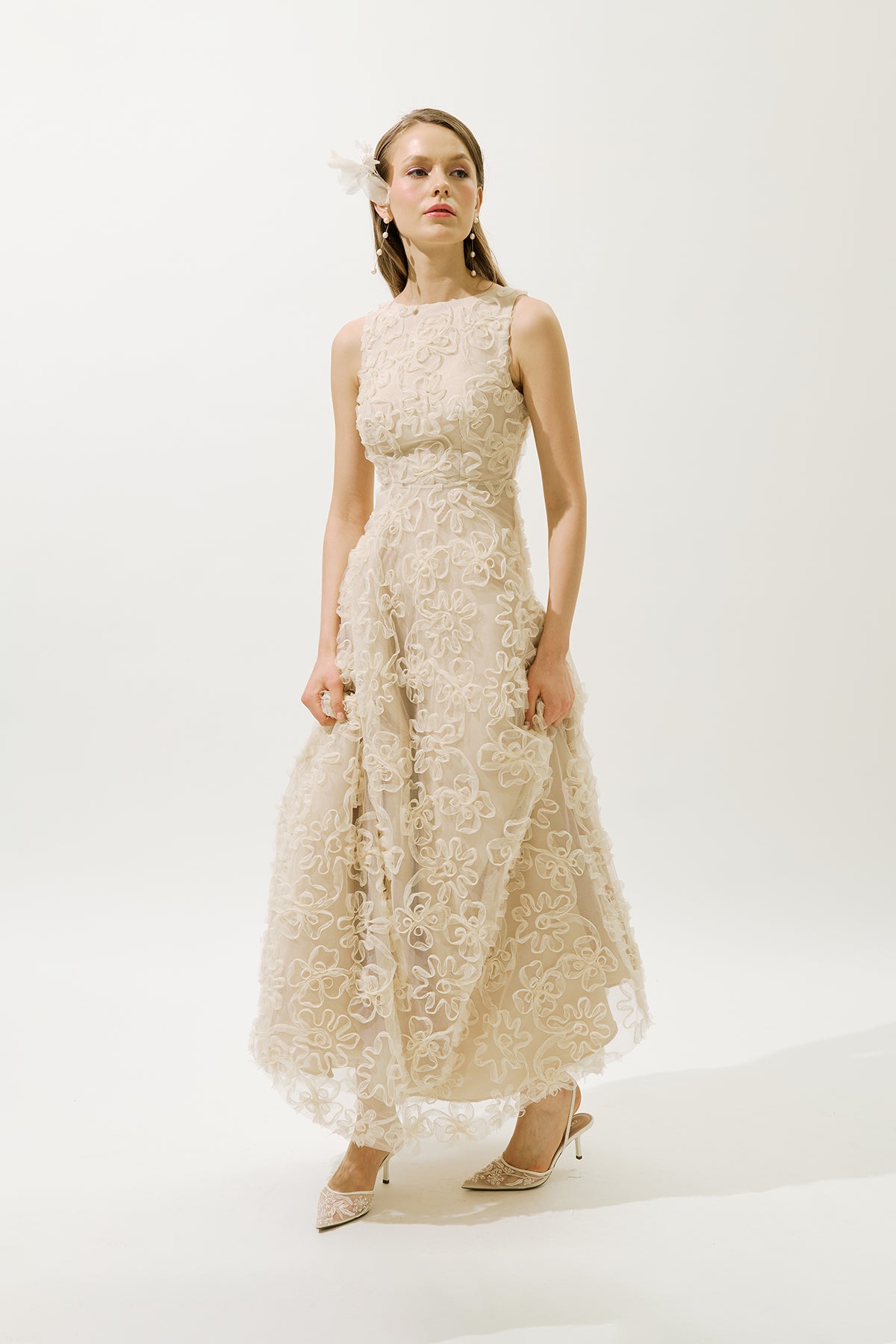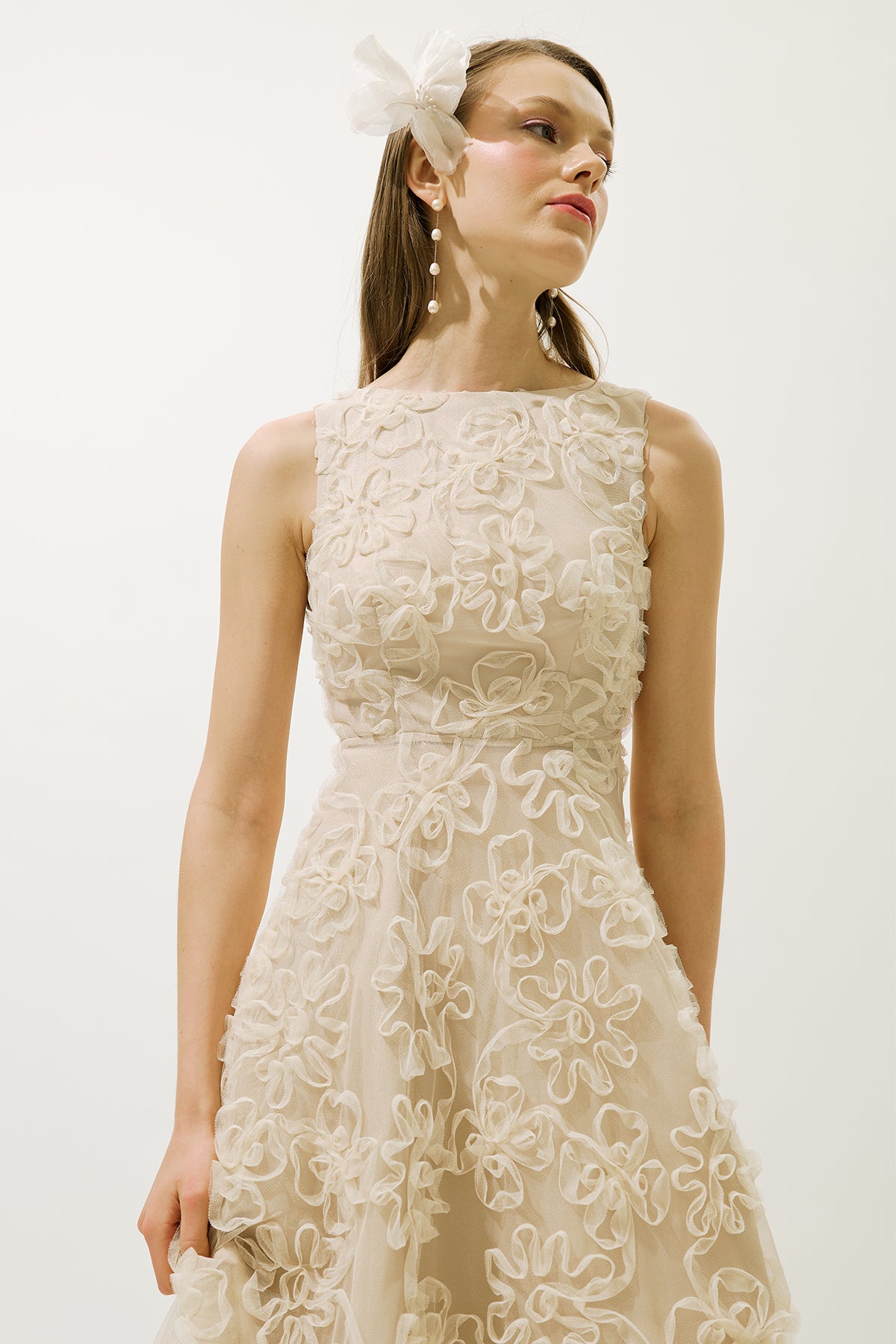 Voluminous Floral Dress Pearl