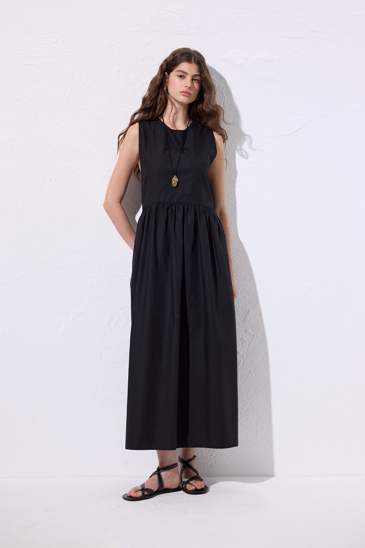 Belted Poplin Dress Black