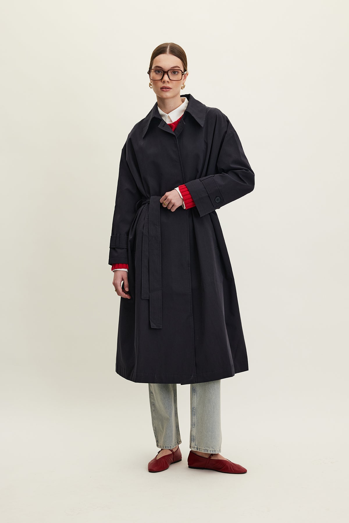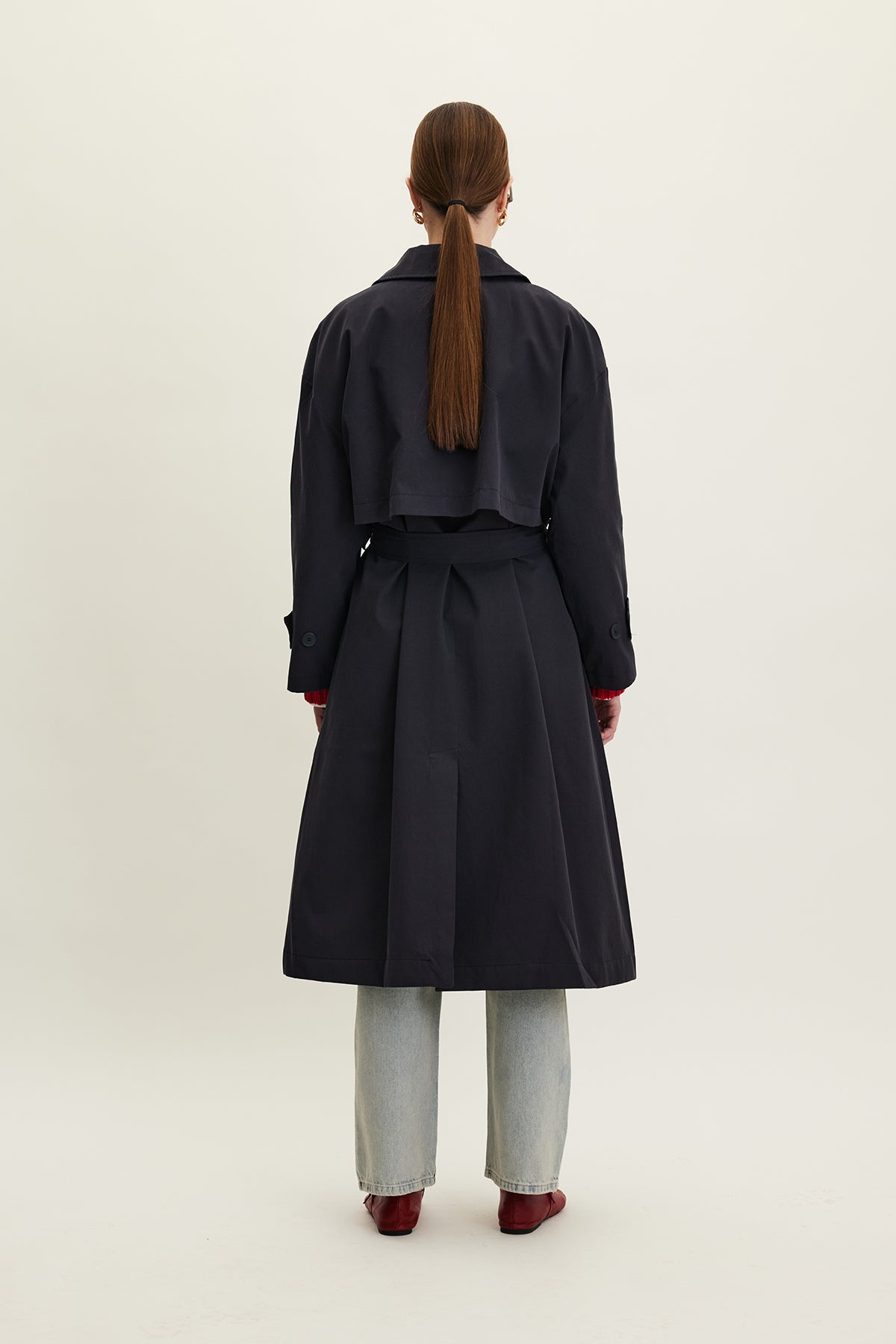 Oversized Belted Gabardine Trench Navy Blue