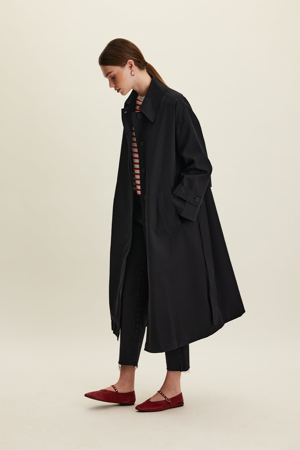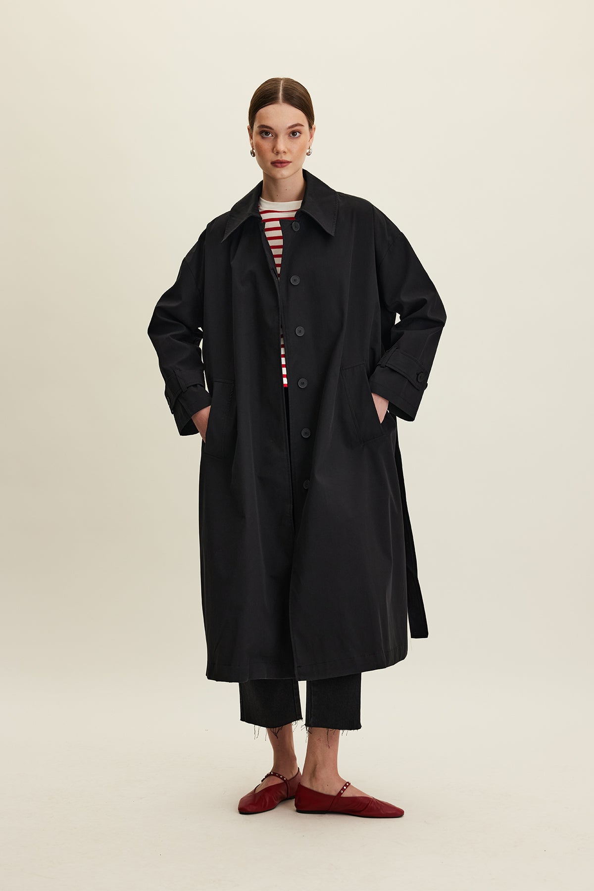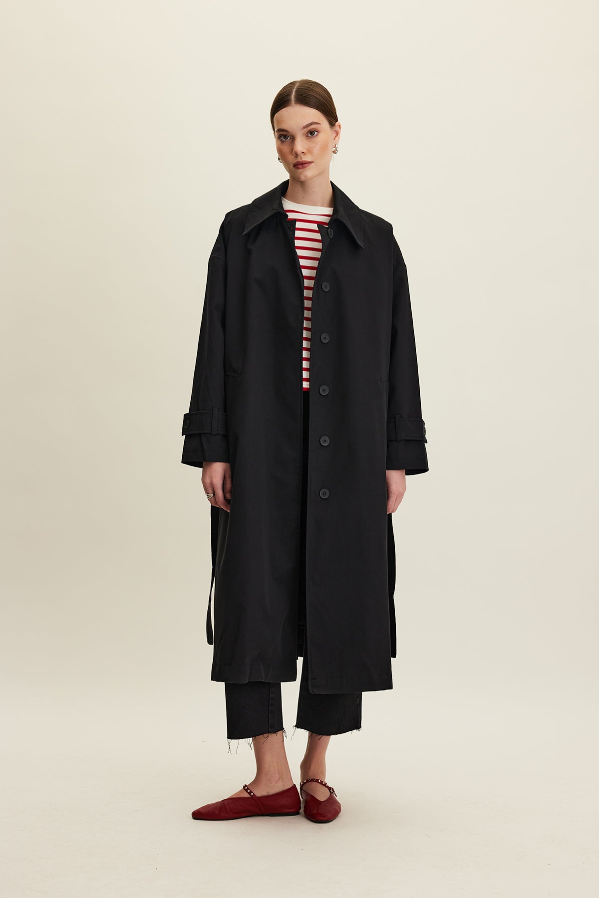 Oversized Belted Gabardine Trench Black