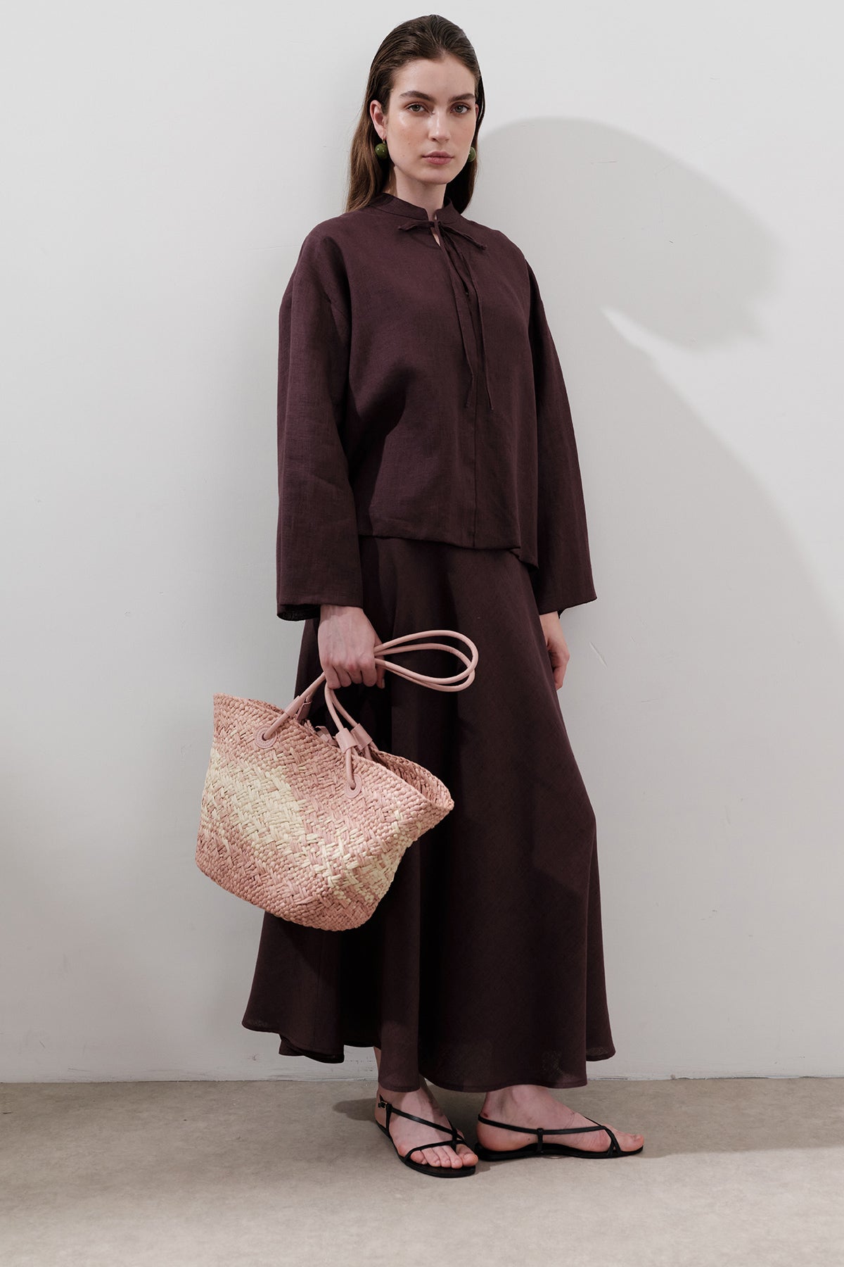 Linen Tie-Front Blouse Damson