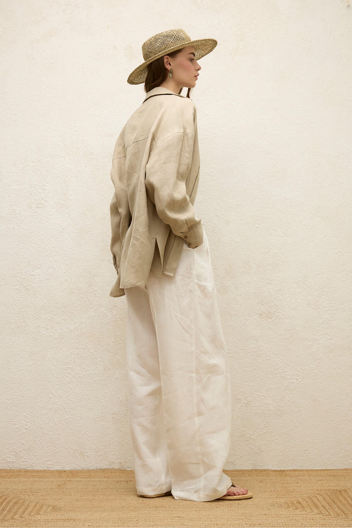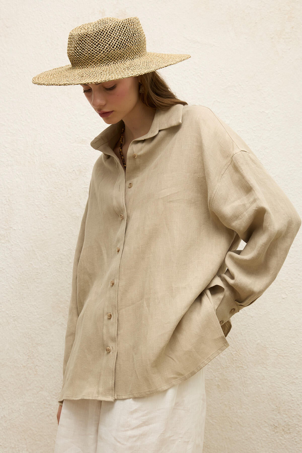 Linen Oversize Buttoned Shirt Sand
