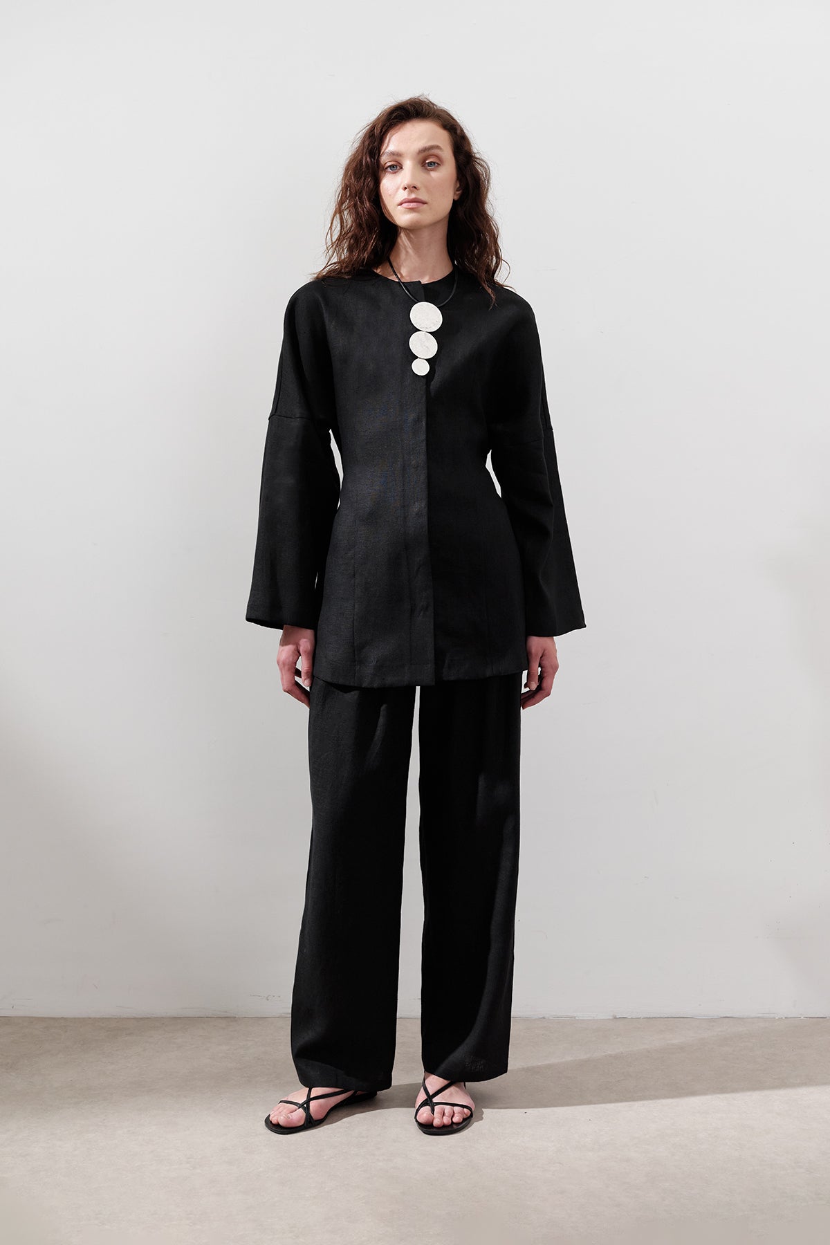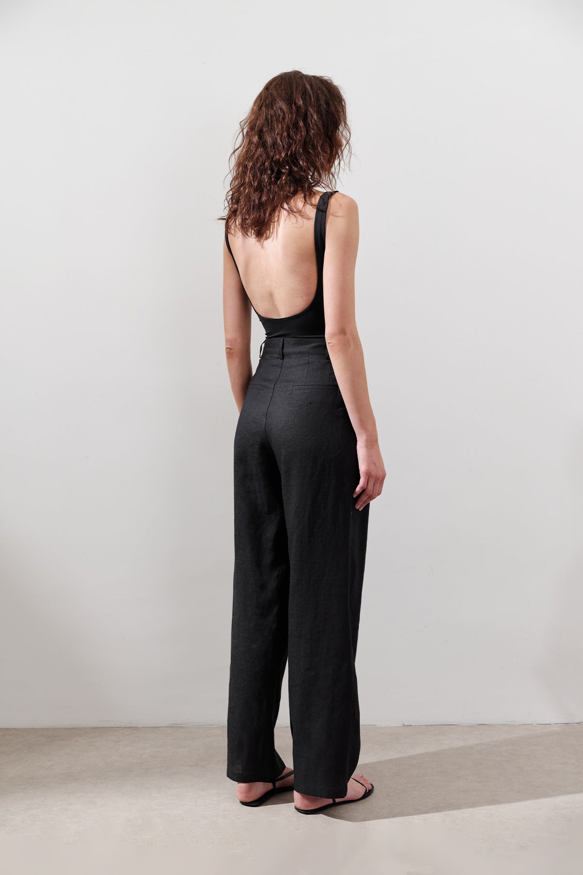 Pleated Wide-Leg Linen Trousers Black