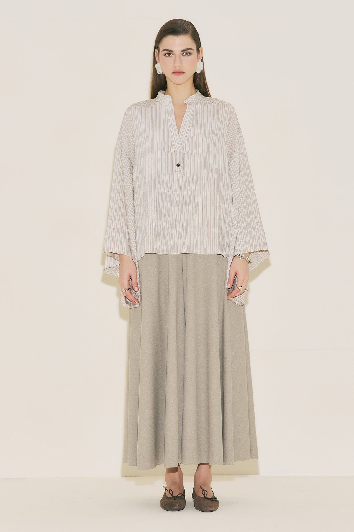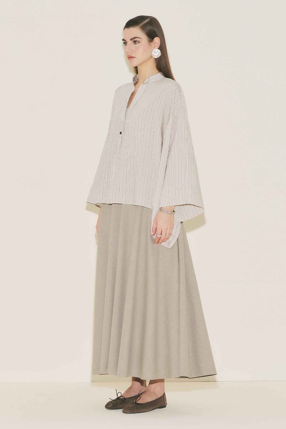 Kimono Sleeve Blouse Brown Striped
