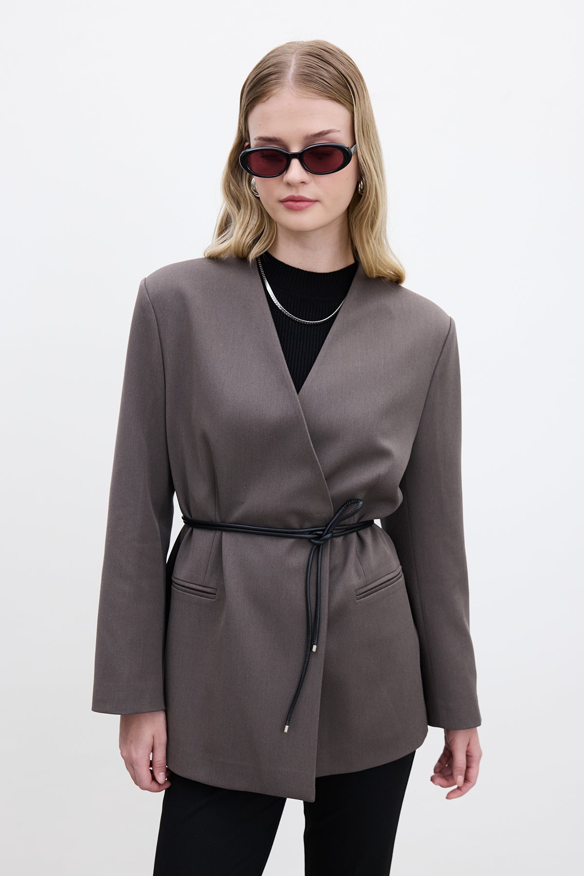 Classic Belted Blazer Mink