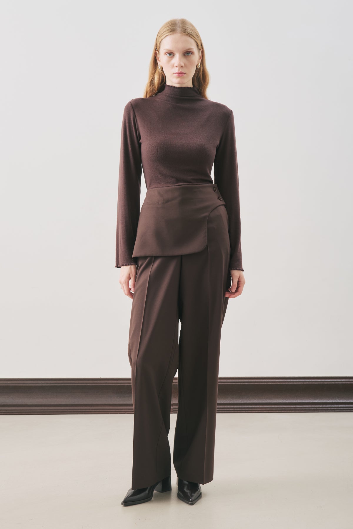 Normal kalıp,yüksek bel,kemer detaylı,pileli,tam boy,fermuarlı,düğmeli.