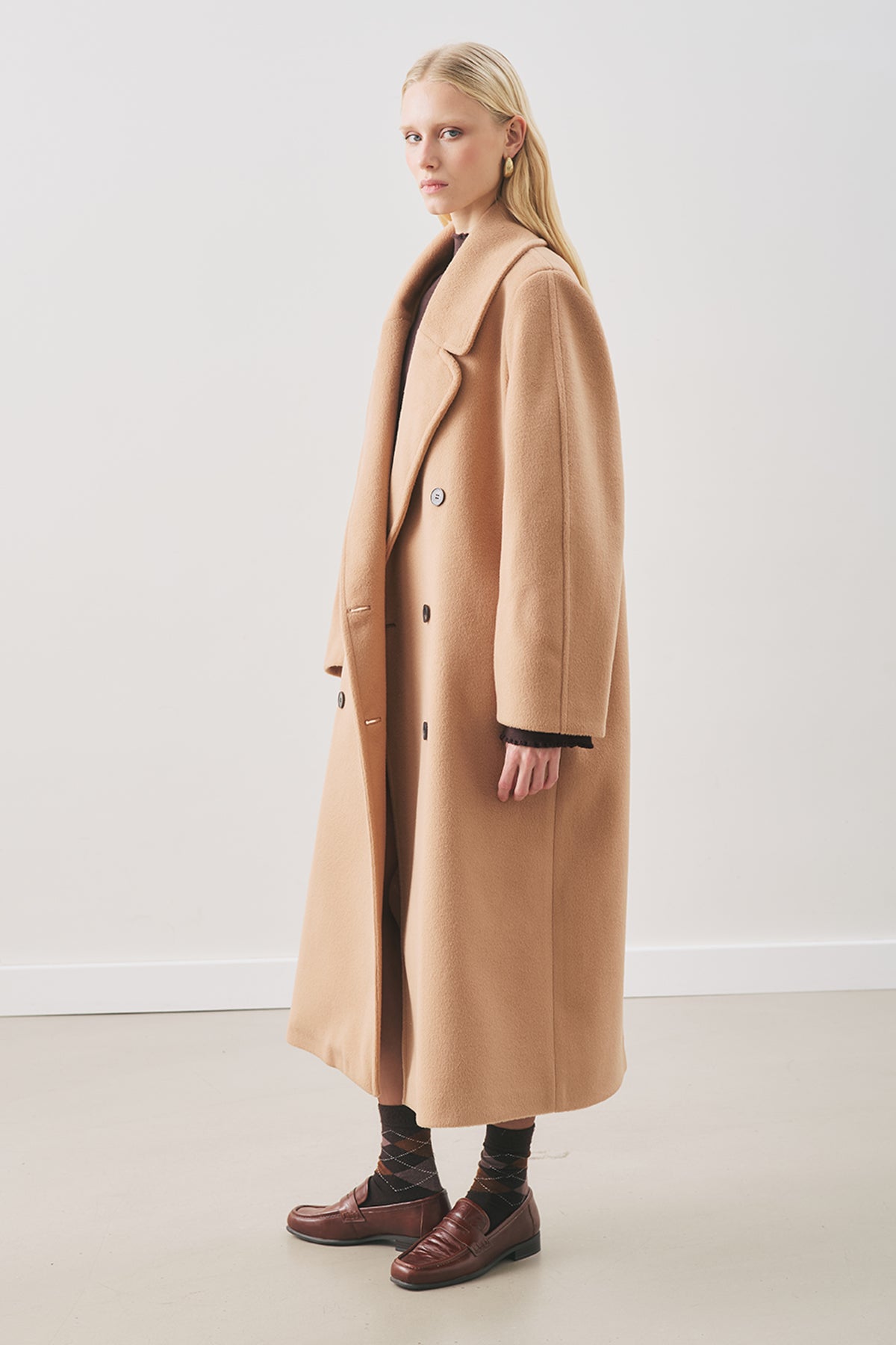 Double-Breasted Wool Coat Light Brown