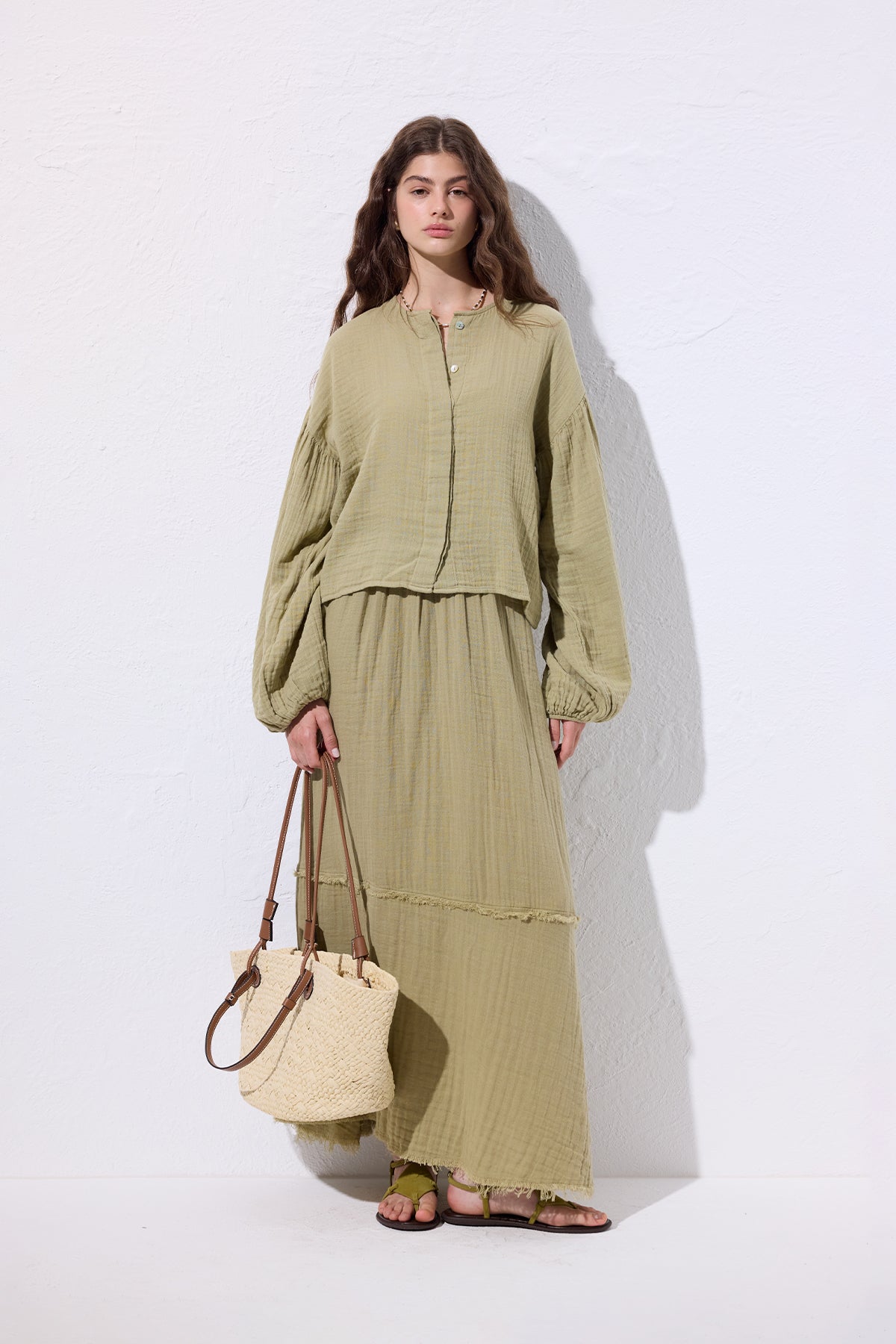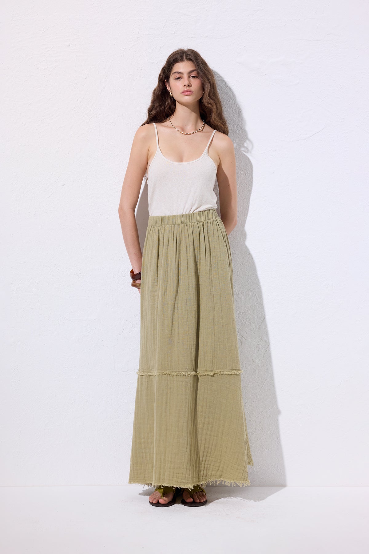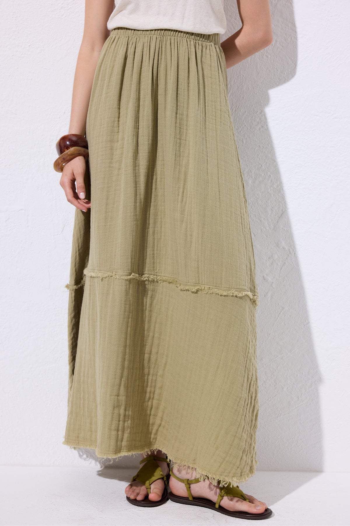 Layered Muslin Maxi Skirt Sage Green
