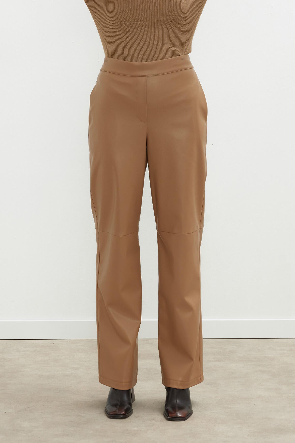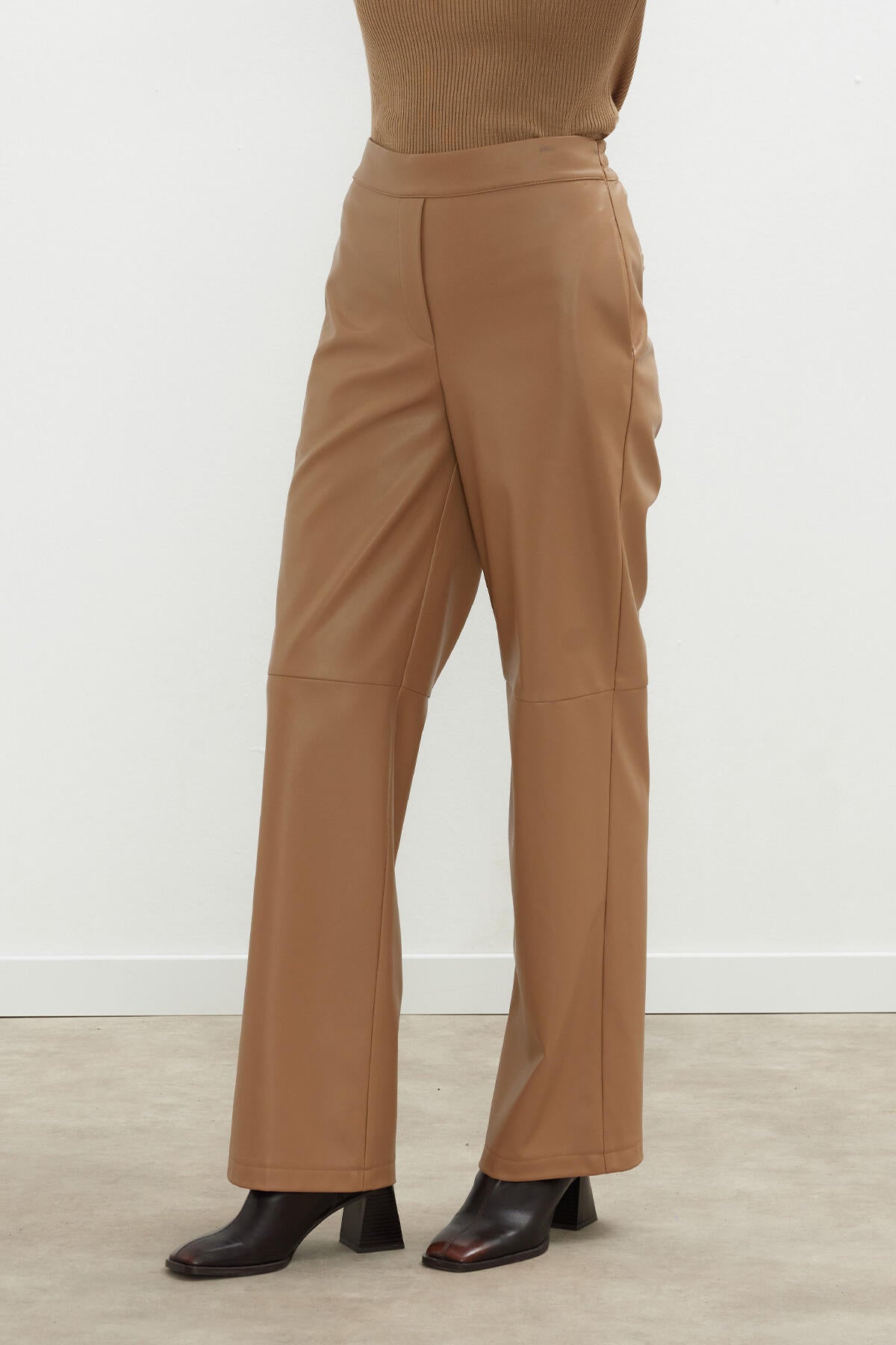 The ultimate statement in luxury and comfort. These high-waisted trousers are designed with a concealed side zipper, ensuring a sleek and seamless fit. The palazzo style and wide leg silhouette offer a modern twist on classic elegance, while side pockets add practicality. The elasticated back waist ensures comfort without compromising style. Crafted from high-quality faux leather, these trousers are a bold choice for those who dare to stand out.