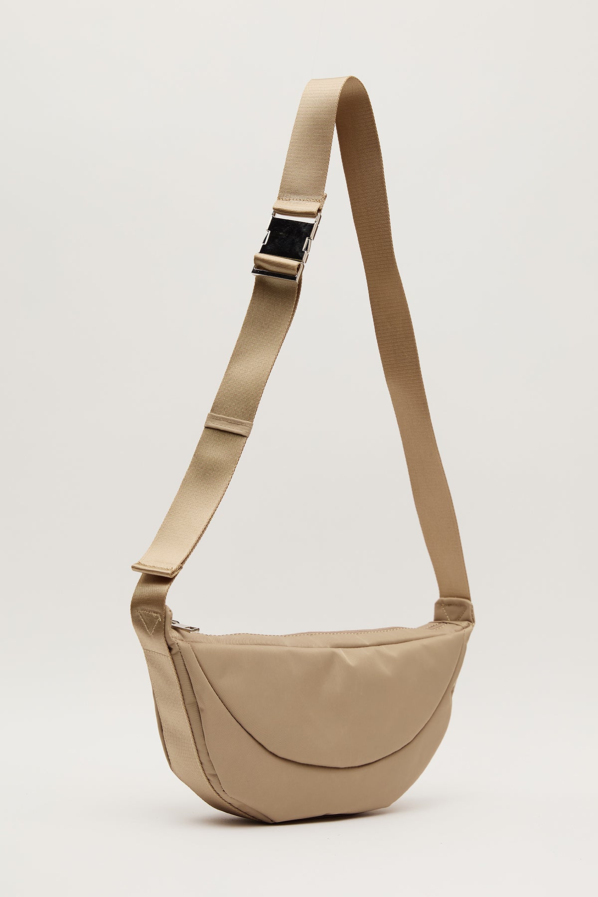 Crafted from technical fabric, this crossbody bag features a zip closure, adjustable strap, and metal buckle detail. It includes a small interior pocket and is fully lined for added convenience.