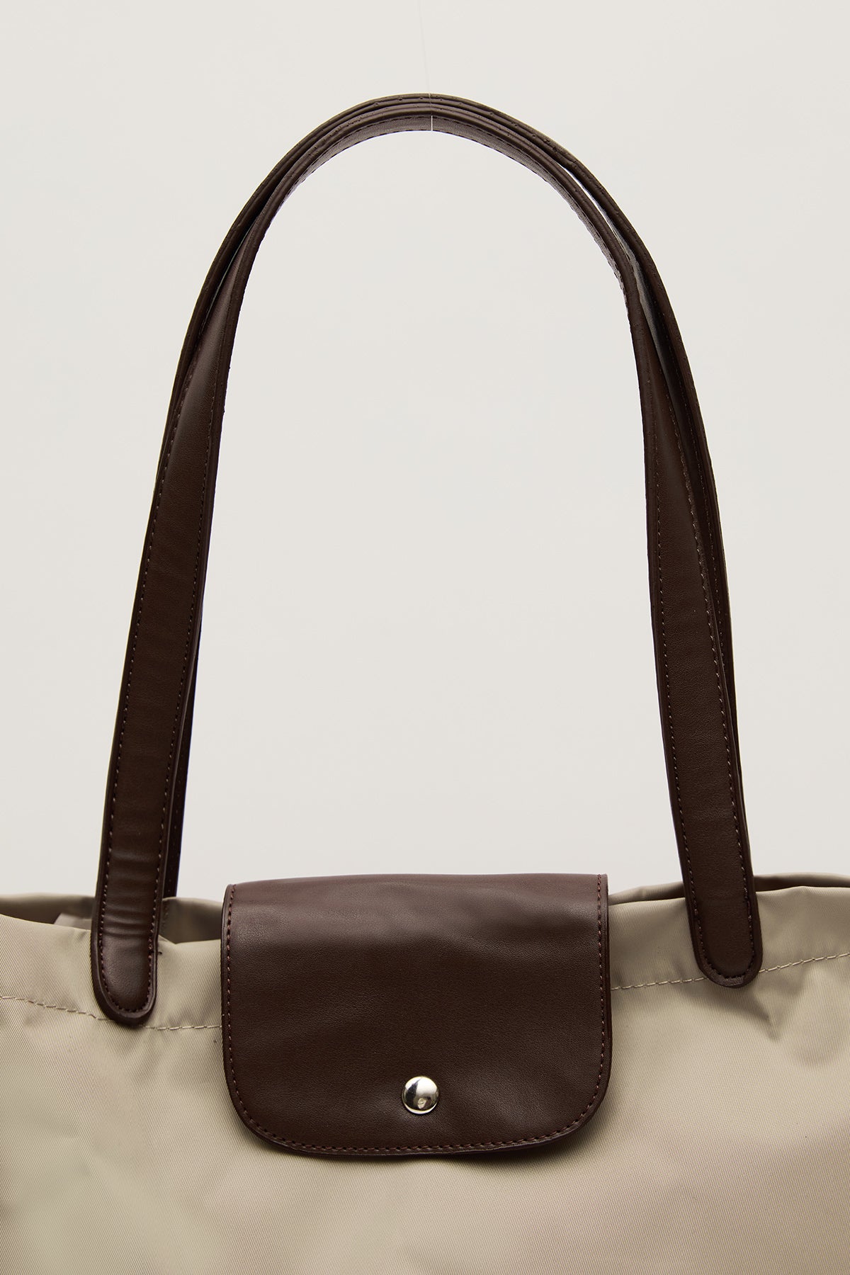 Shoulder strap, snap fastening, with a small inner pocket, trimmed with synthetic leather, lined. Technical fabric.