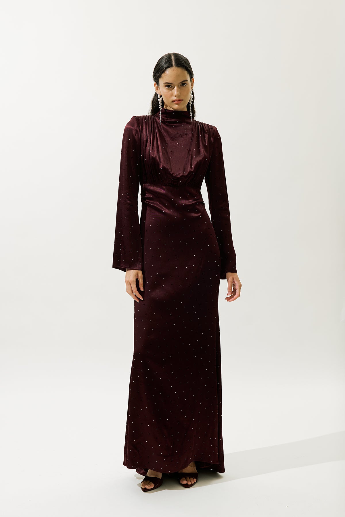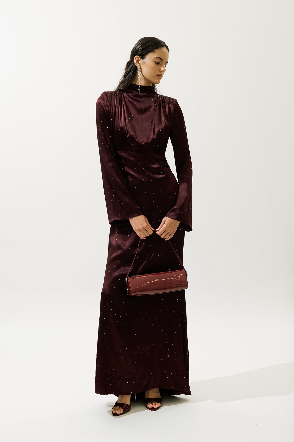 Mila Embellished Evening Dress Burgundy