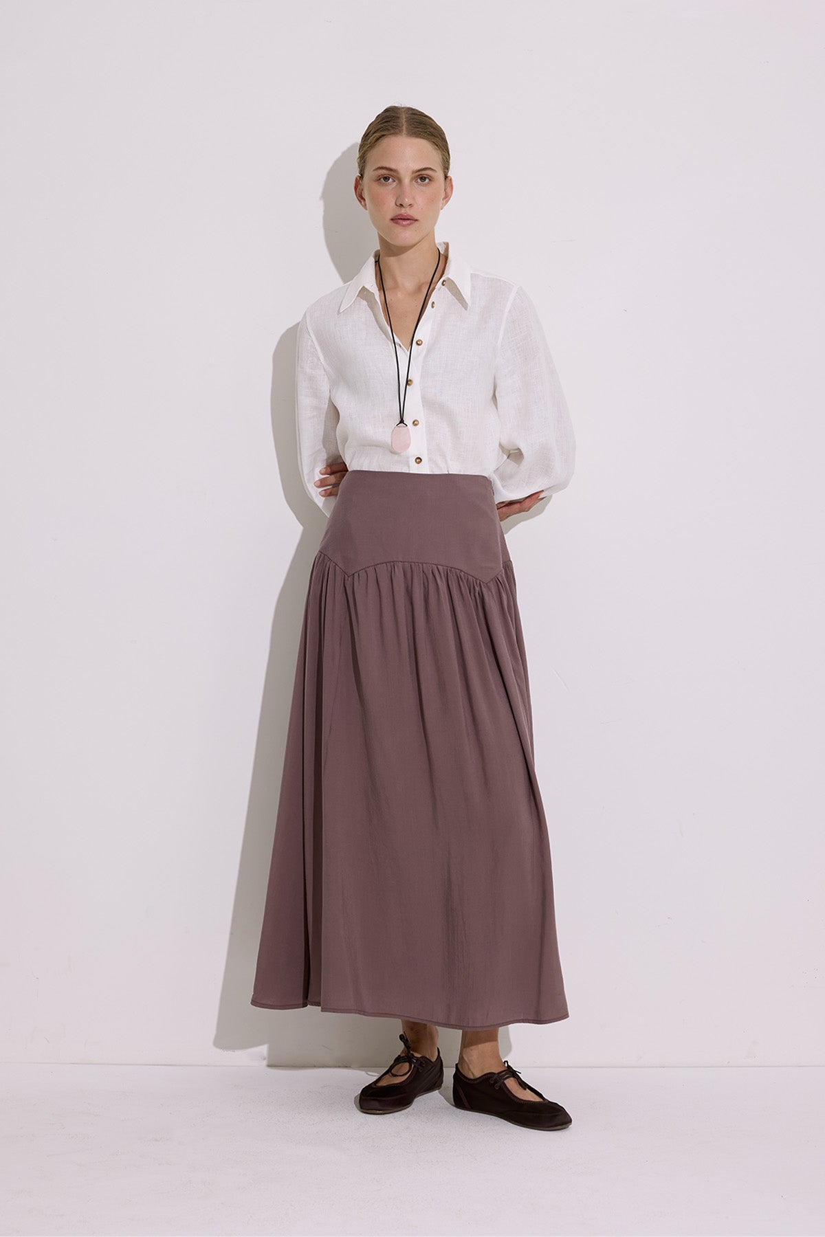 Modal Ruched Maxi Skirt Dusty Rose