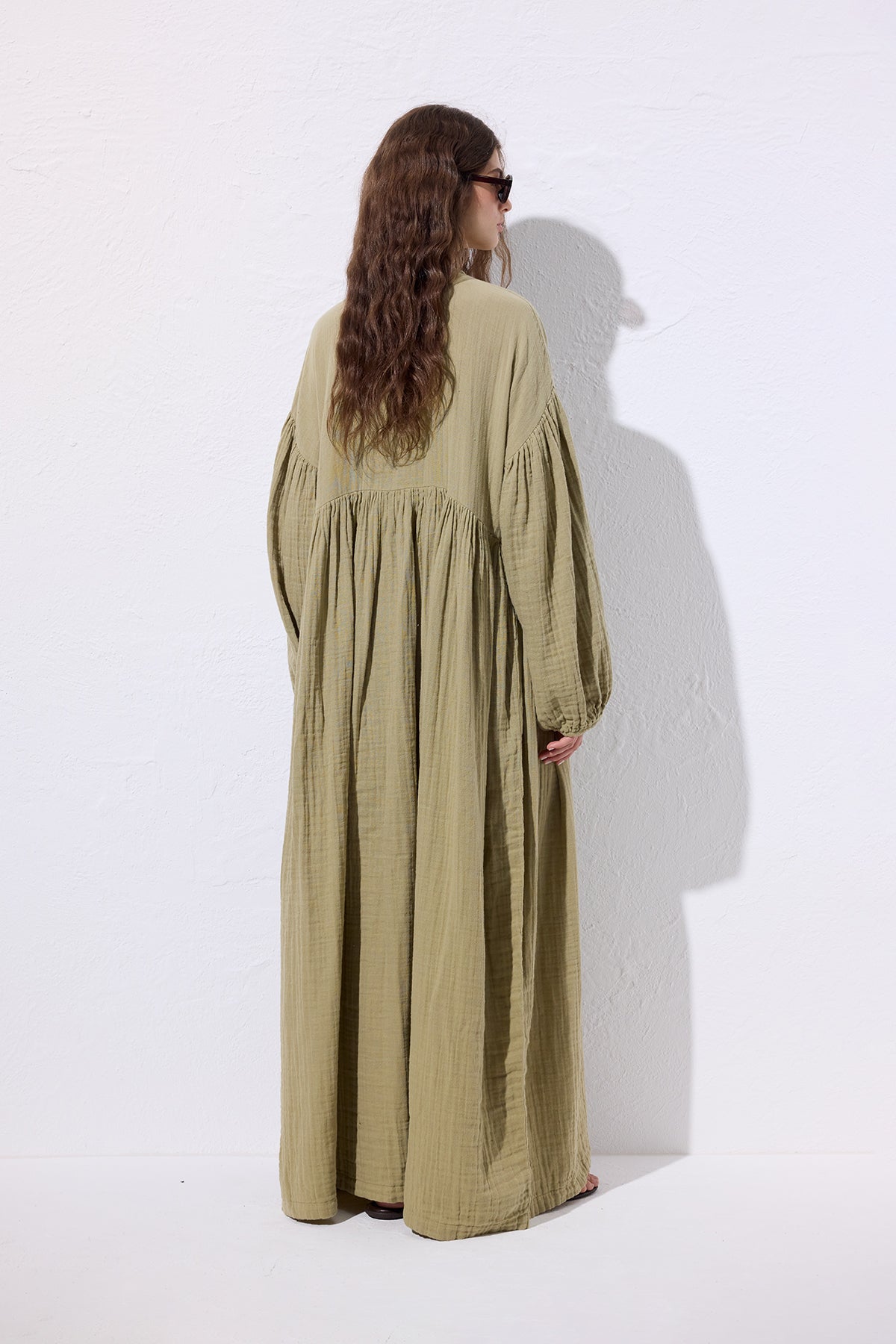 Size S/M: Front Length: 142 cm, Back Length: 141 cm, Hem: 120 cm, Sleeve Length: 49 cm, Waist: 55 cm, Chest: 58 cm
