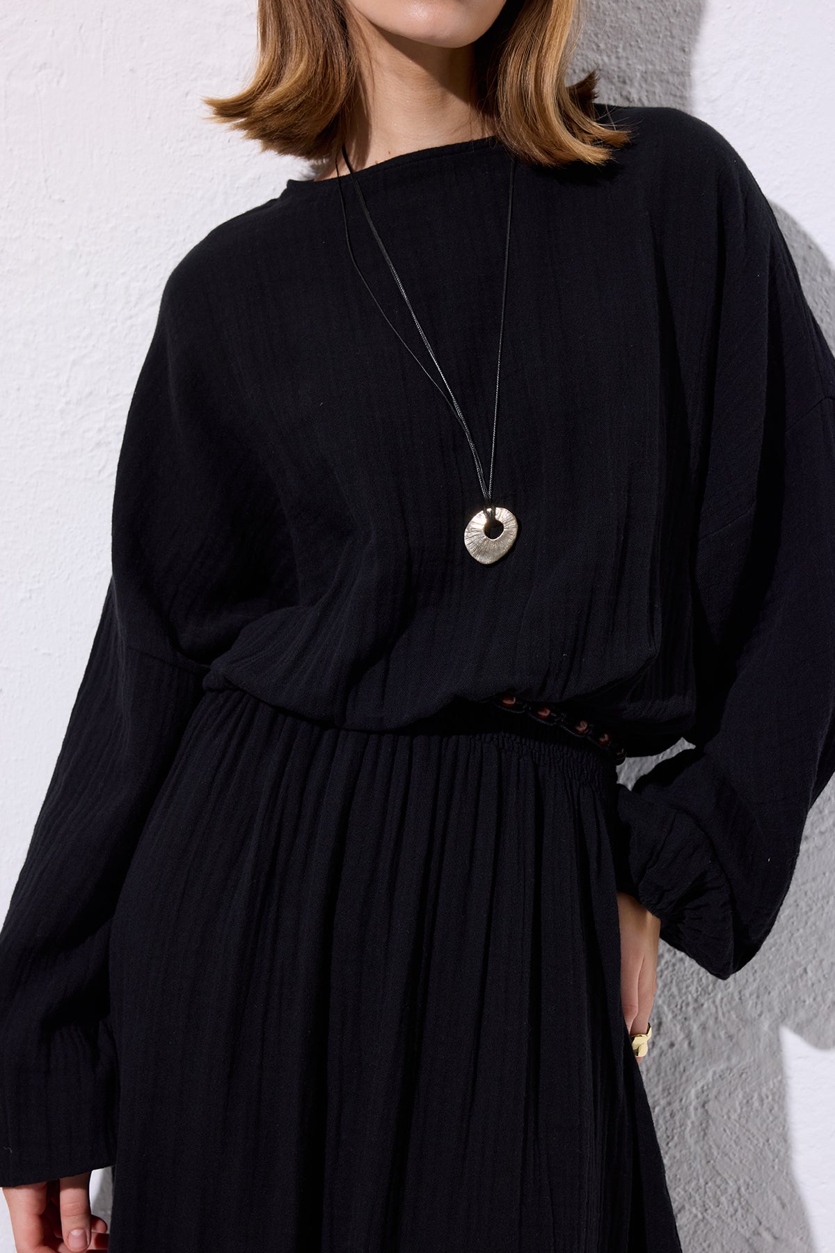 Size M: Front Length: 151 cm, Back Length: 151 cm, Hem: 107 cm, Sleeve Length: 46.5 cm, Waist: 32 cm, Chest: 63 cm
