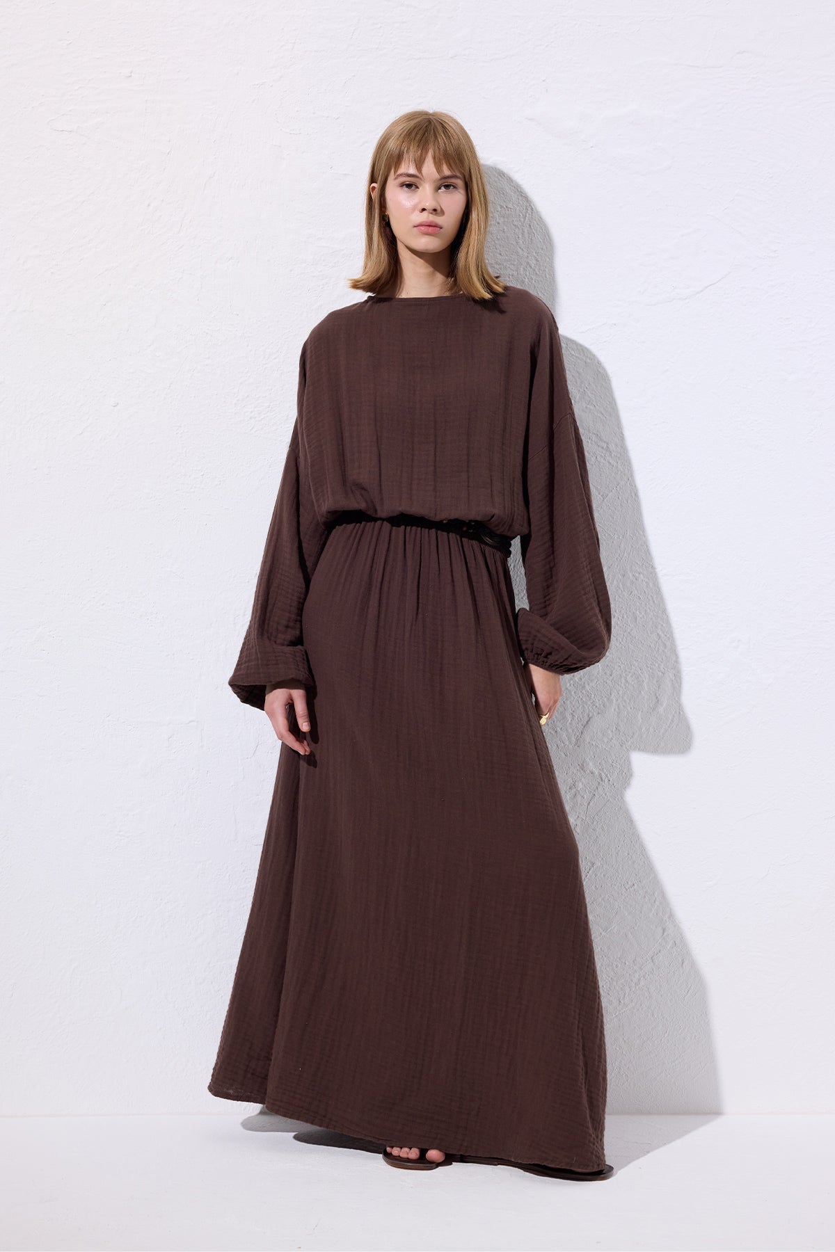Size M: Front Length: 151 cm, Back Length: 151 cm, Hem: 107 cm, Sleeve Length: 46.5 cm, Waist: 32 cm, Chest: 63 cm