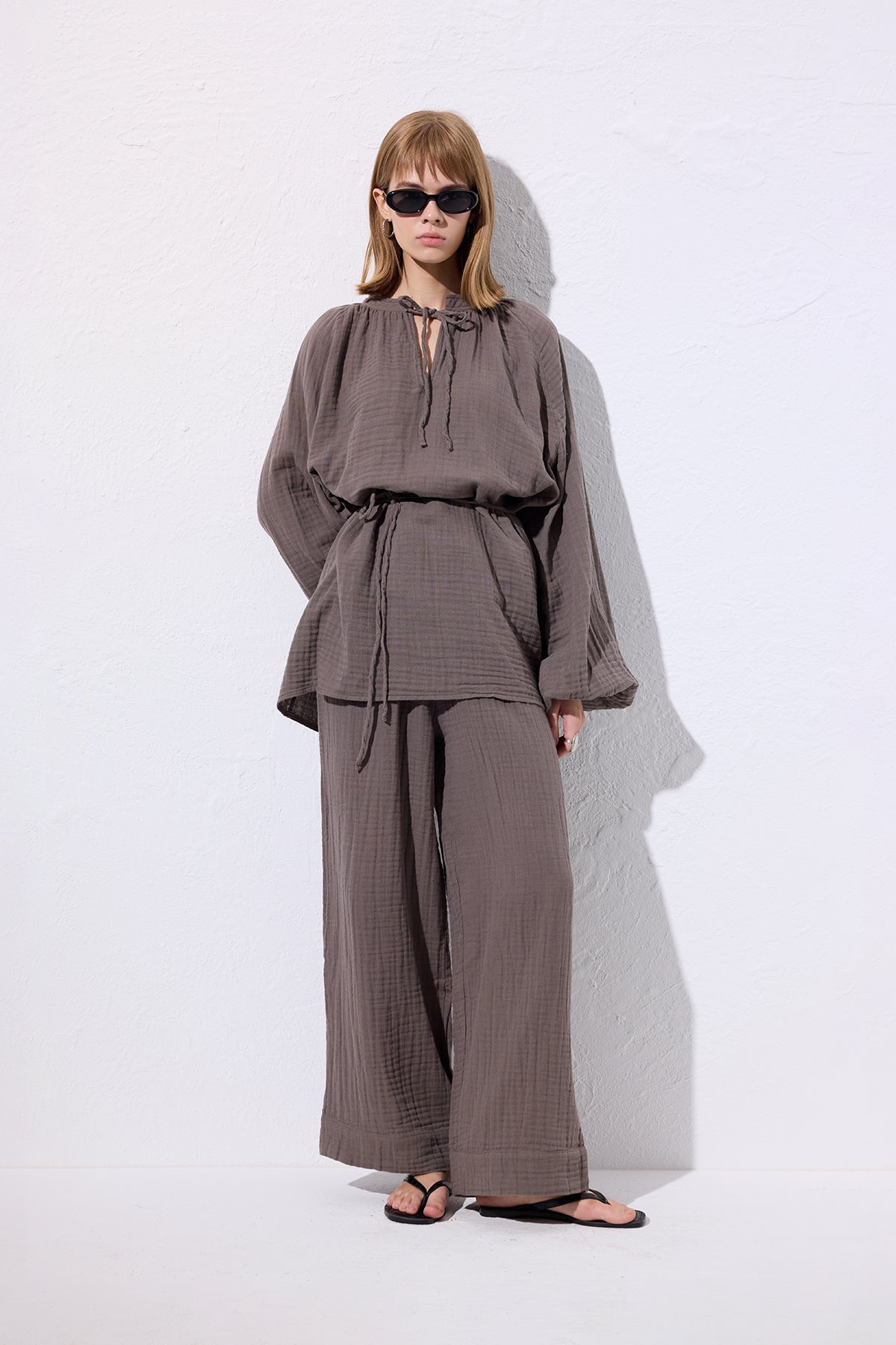 Muslin Tie Blouse Grey