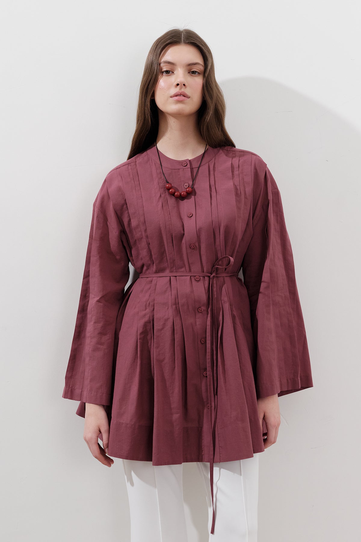 Pleated Wide-Sleeve Tunic Dusty Rose