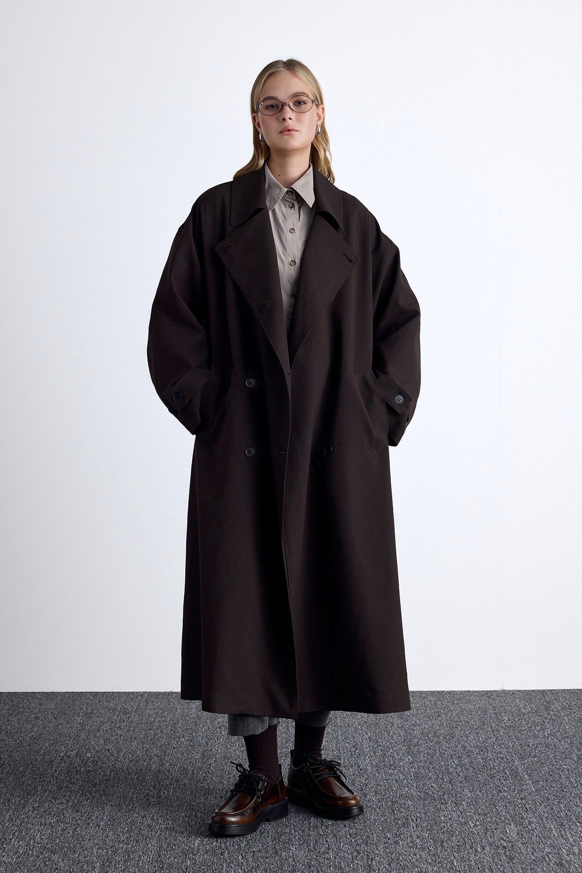 Nicola Double Breasted Trench Coat Dark Brown