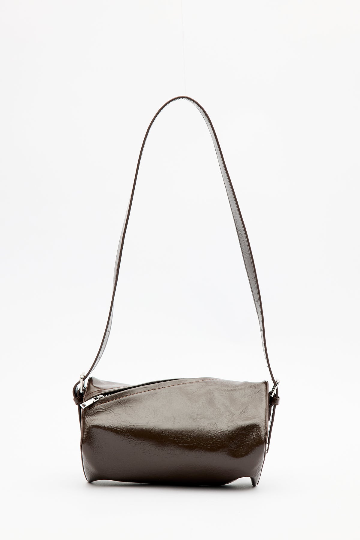 Kare formlu çapraz fermuarlı,fermuarlı kapama,suni deri,astarlı.