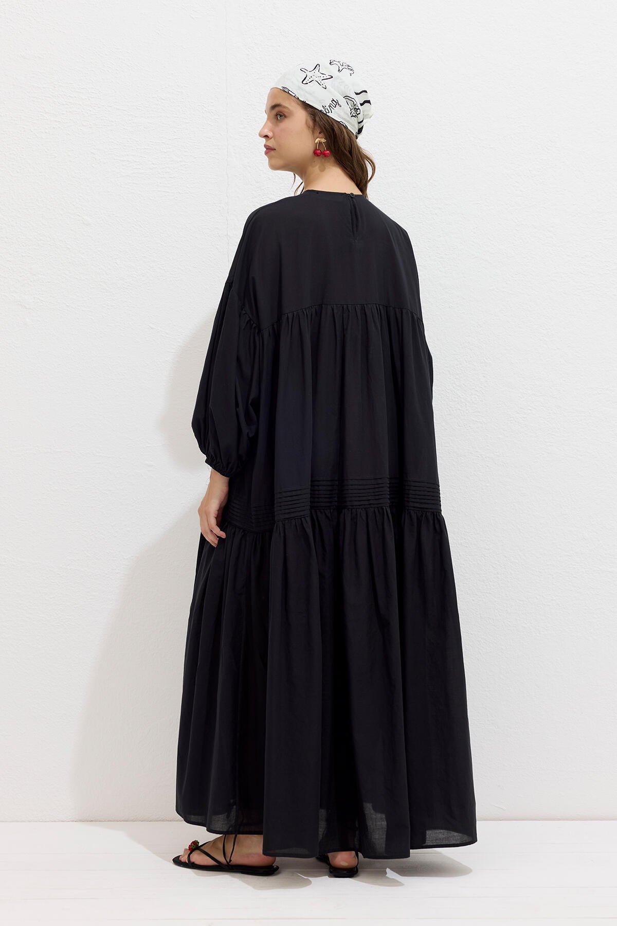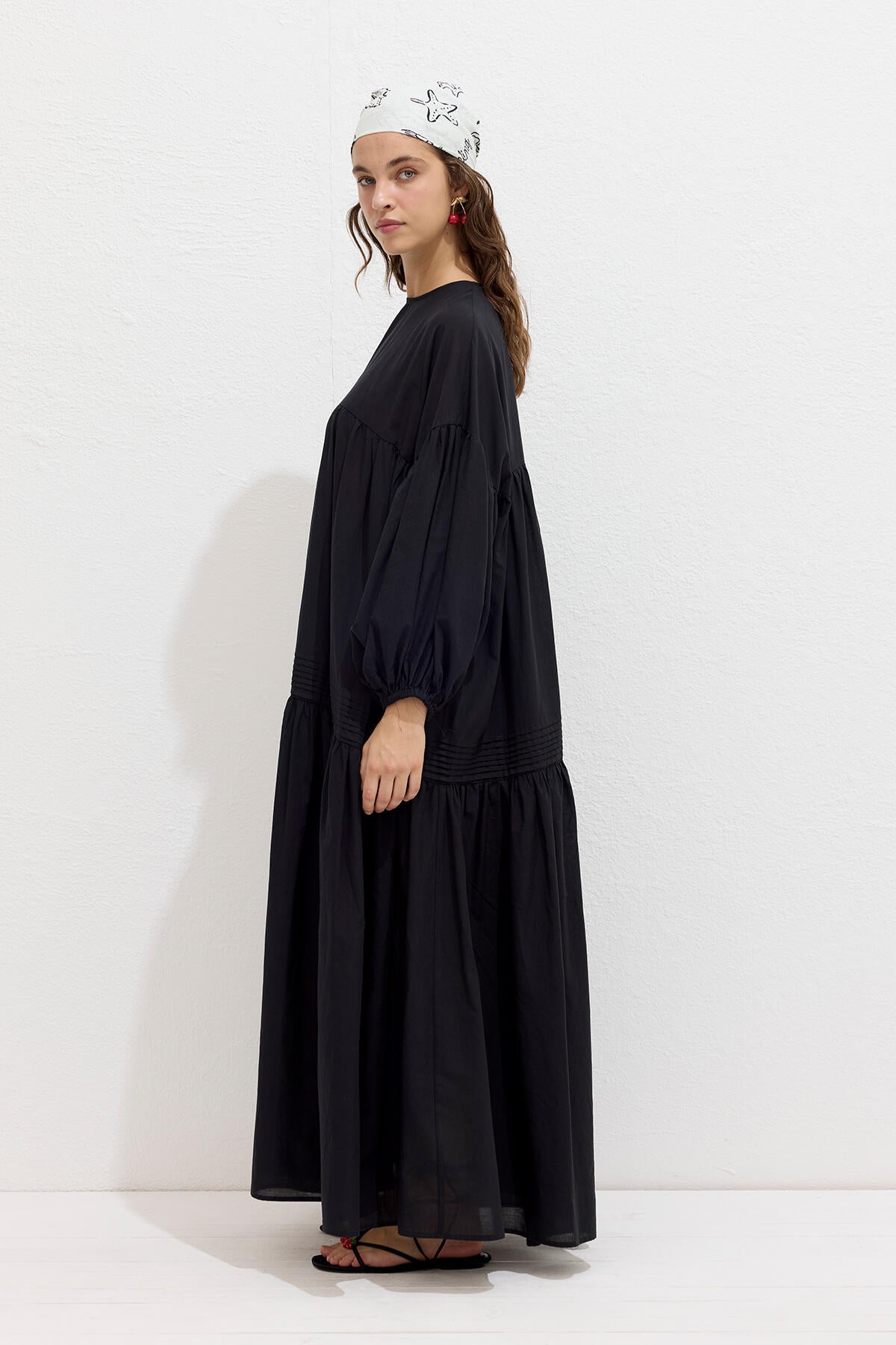 Gathered Oversized Voile Dress Black