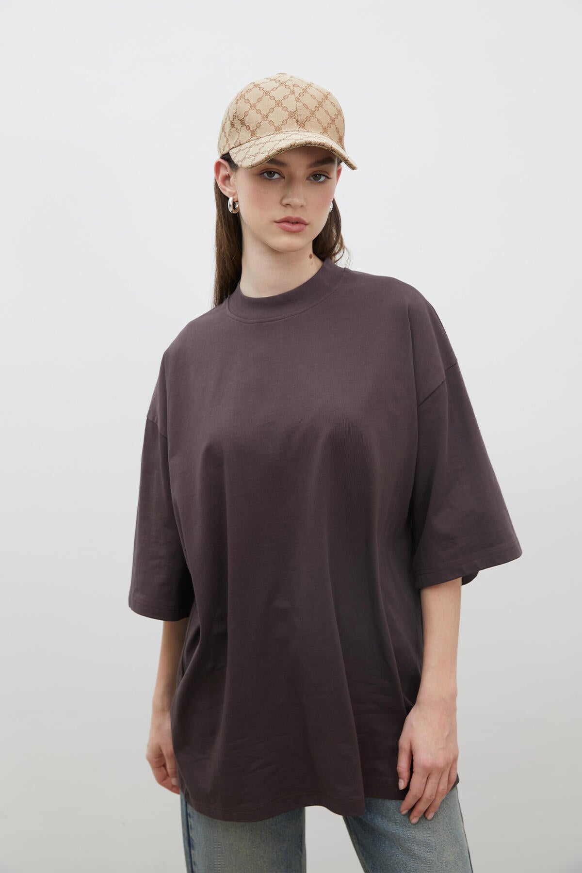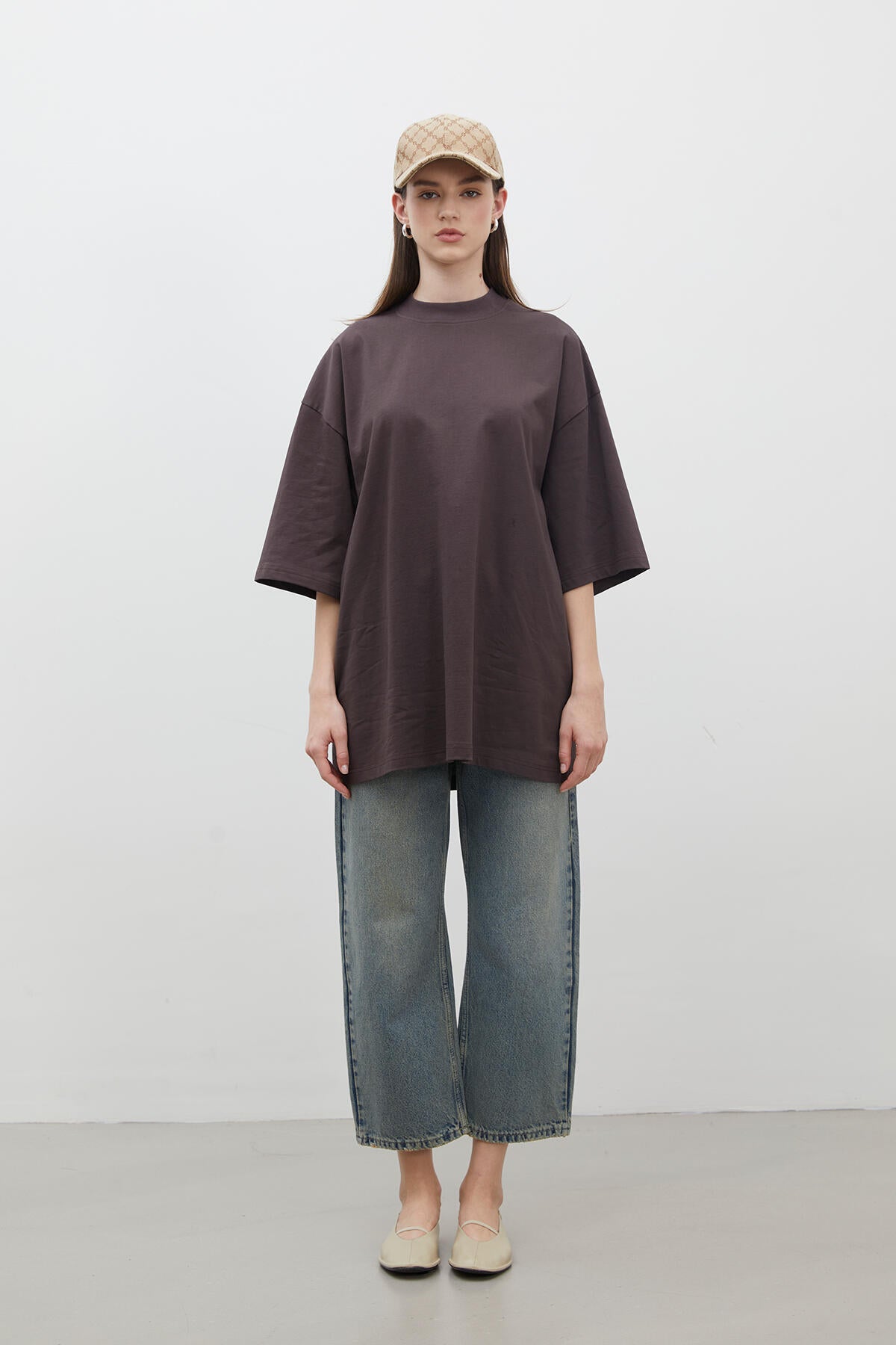 Oversize Cotton Short Sleeve T-Shirt Dark Brown