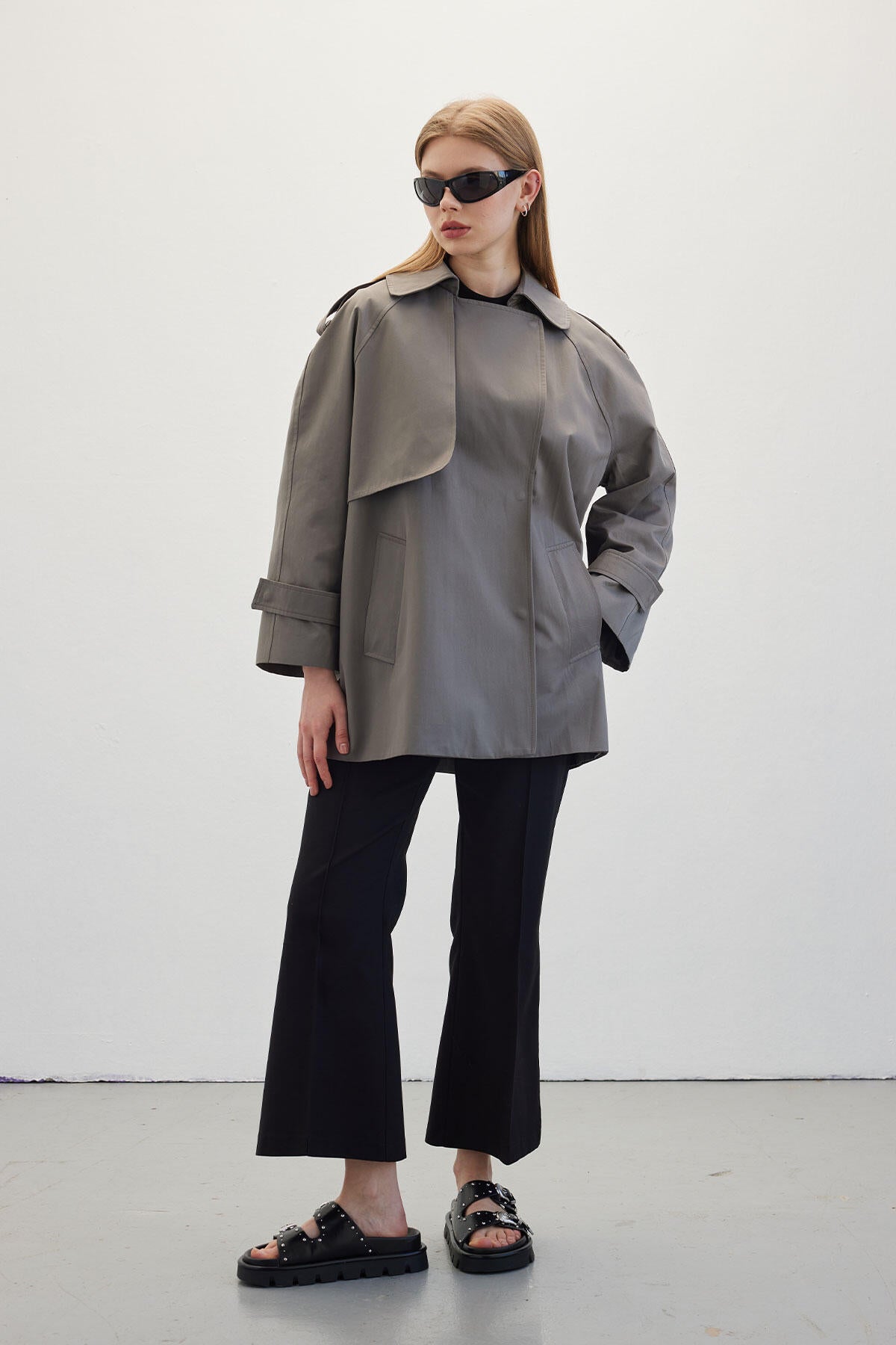 Crafted with care and attention to detail, this coat is designed to make a statement while keeping you cosy and stylish. The double-breasted closure and raglan sleeves add a touch of sophistication, while the lining ensures warmth and comfort on chilly days. With its wind-resistant construction and belted detail, this coat is as practical as it is fashionable.