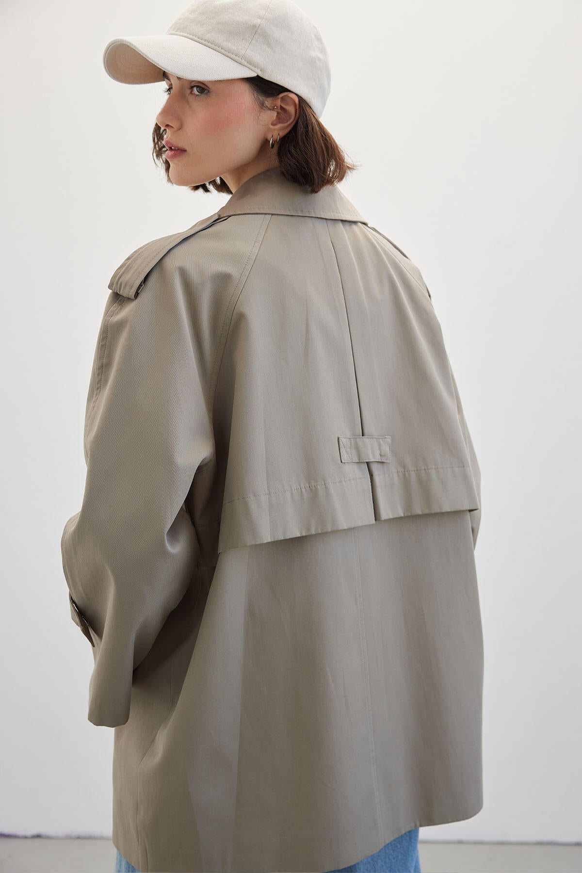 Crafted with care and attention to detail, this coat is designed to make a statement while keeping you cosy and stylish. The double-breasted closure and raglan sleeves add a touch of sophistication, while the lining ensures warmth and comfort on chilly days. With its wind-resistant construction and belted detail, this coat is as practical as it is fashionable.