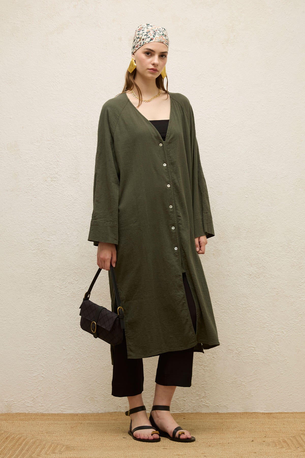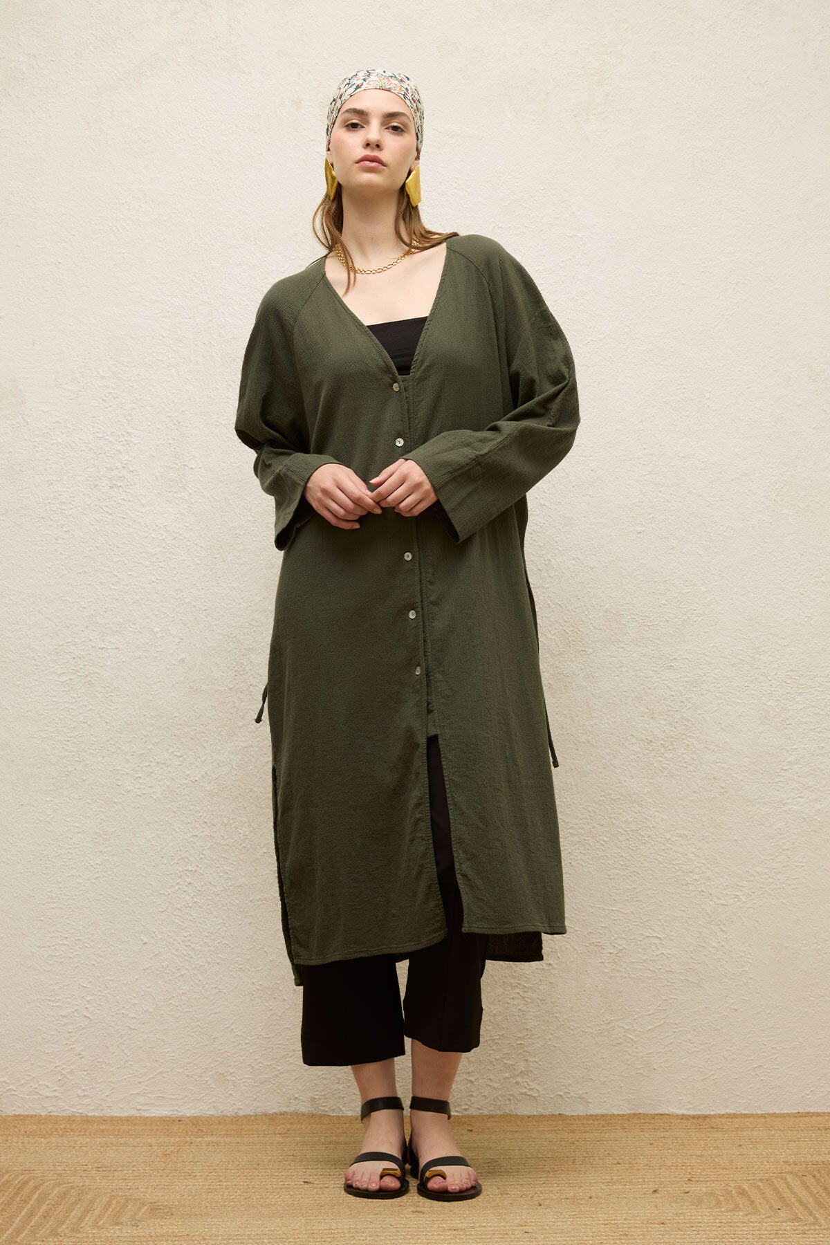 Cotton Tie-Waist Long Tunic Emerald