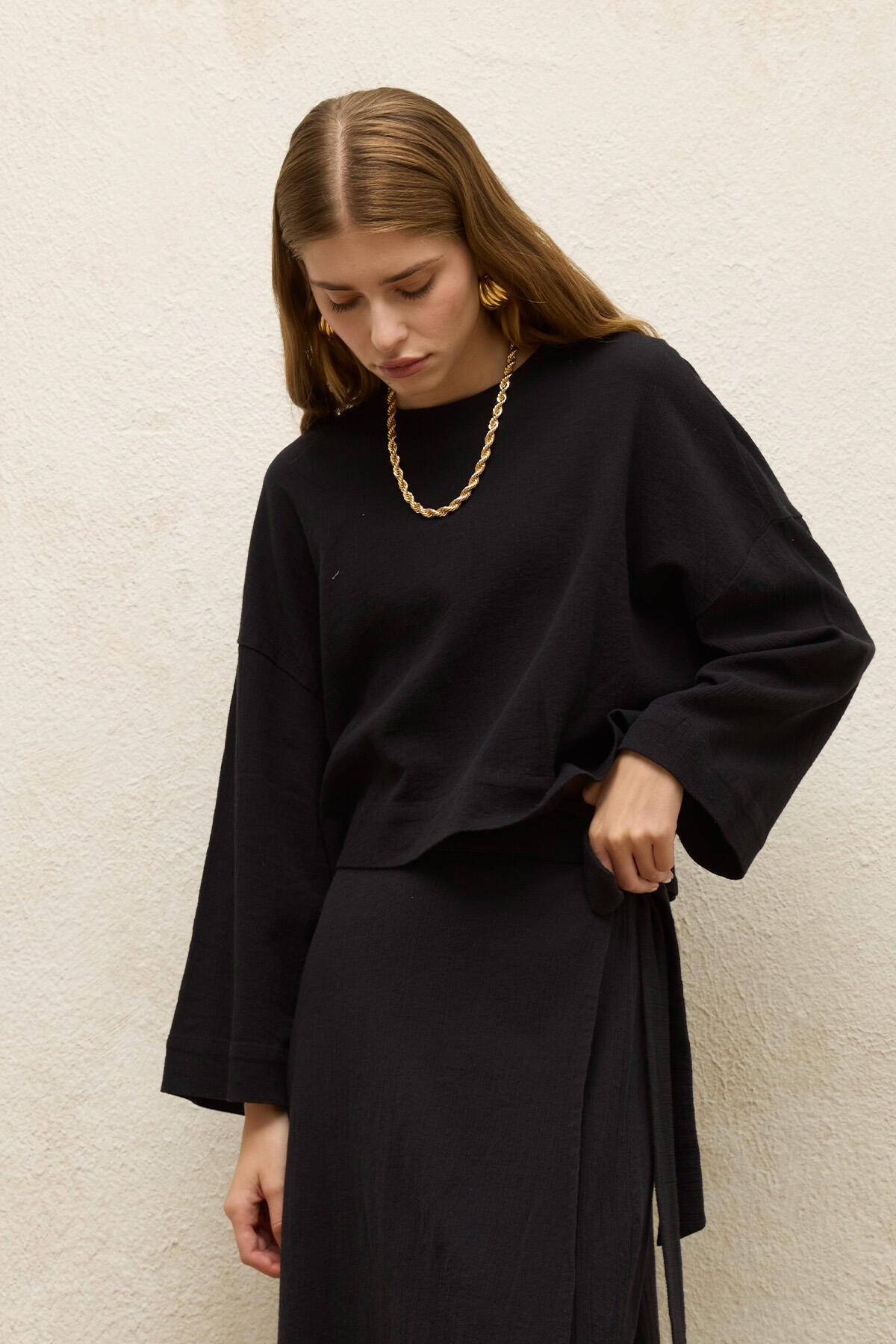 Size S/M: Chest: 58 cm, Sleeve Length: 40 cm, Front Length: 50 cm, Back Length: 52 cm