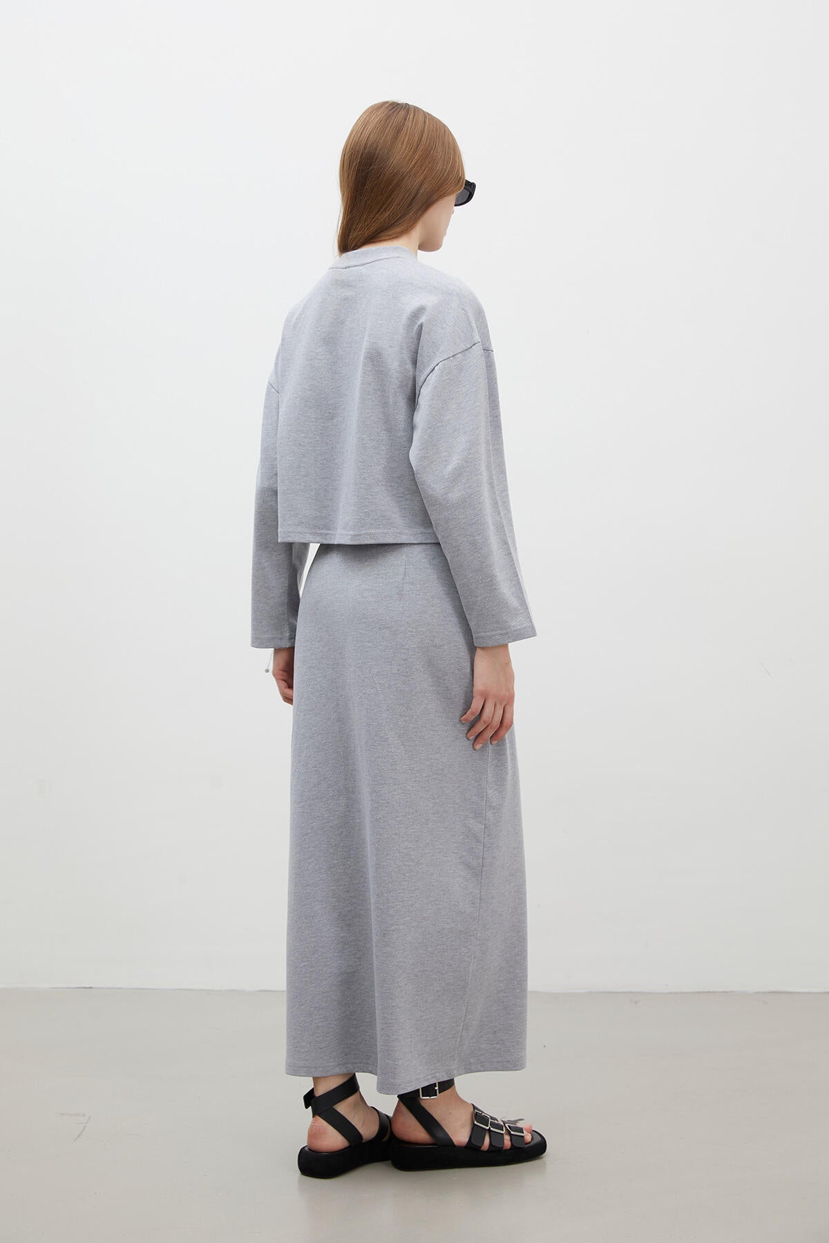Cotton Pencil Skirt Grey Melange