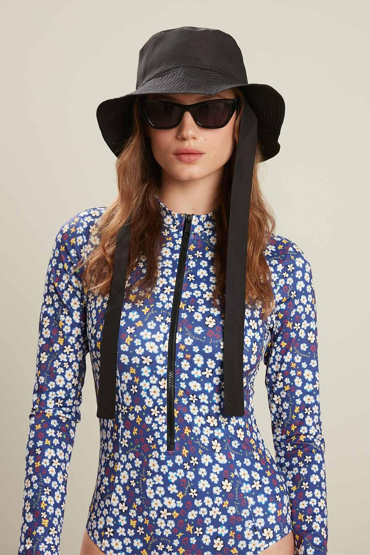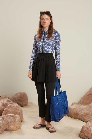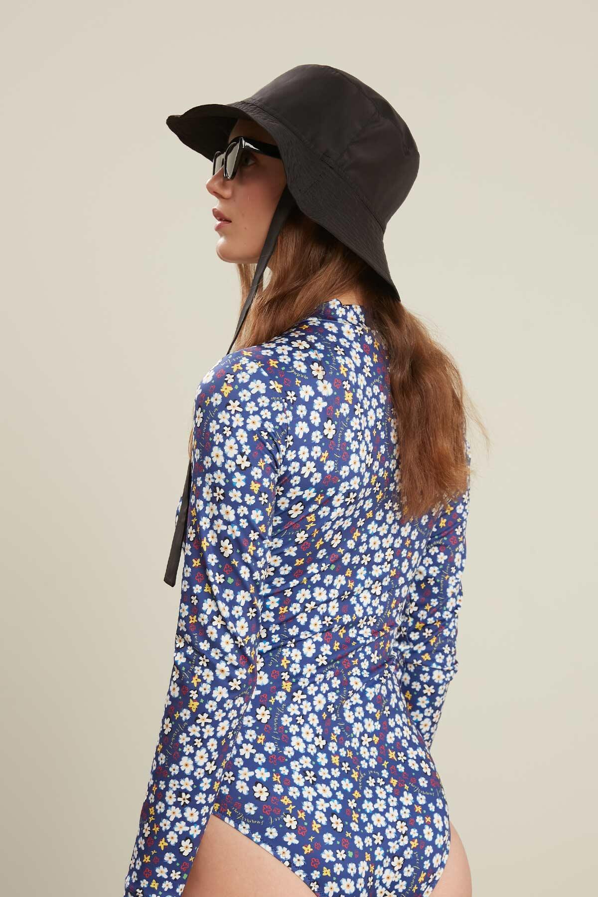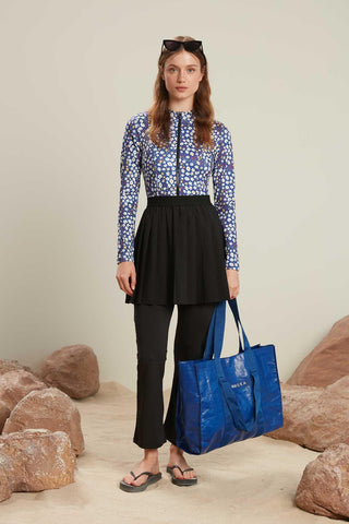 Crafted from flexible swimwear fabric with a composition of 90% polyester and 10% elastane, this swimsuit offers both comfort and stretch for a flattering fit. The high neckline and front zipper closure ensure a secure and stylish look, while the padded cups provide support and shape to the bust. Designed with a vibrant pattern, it adds a pop of color to your poolside ensemble (only includes the upper part of the swimsuit).