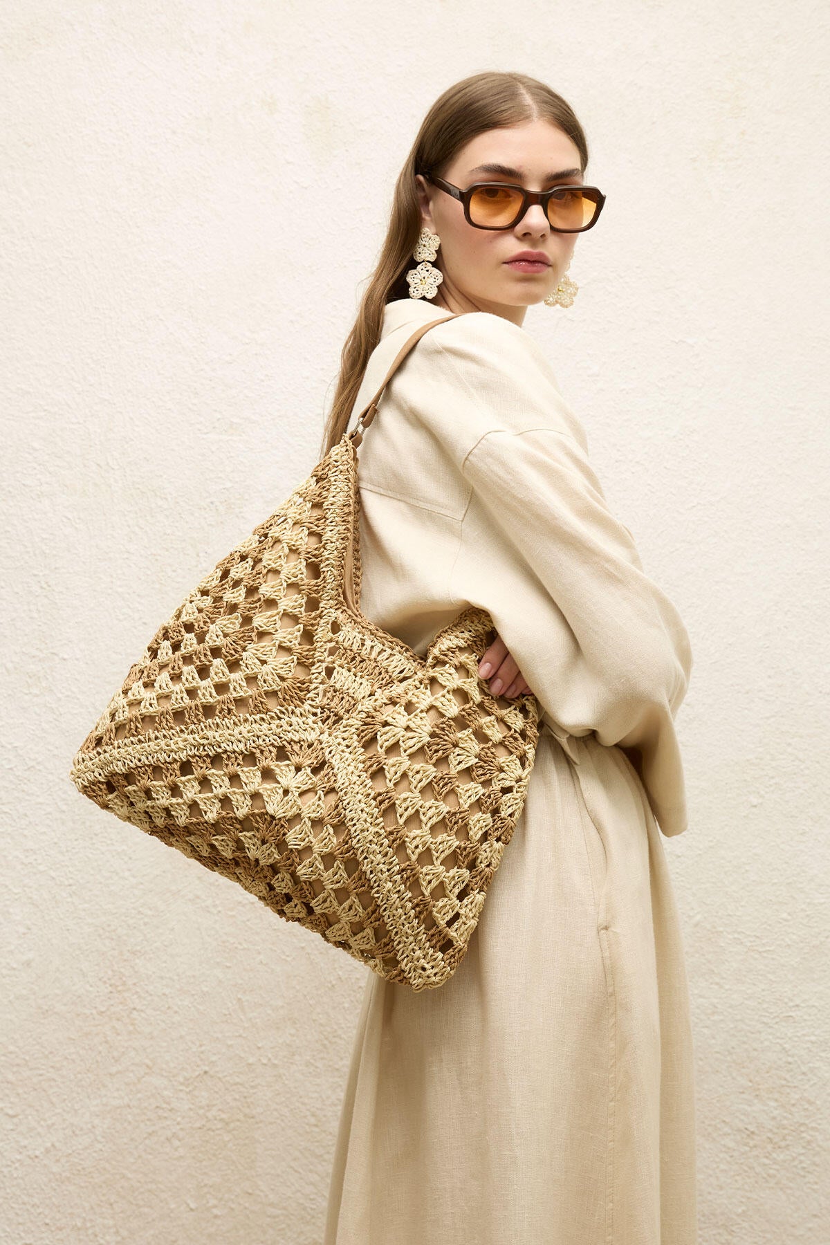 Synthetic leather shoulder strap, snap fastening, with a small inner pocket, featuring an embossed pattern, lined.