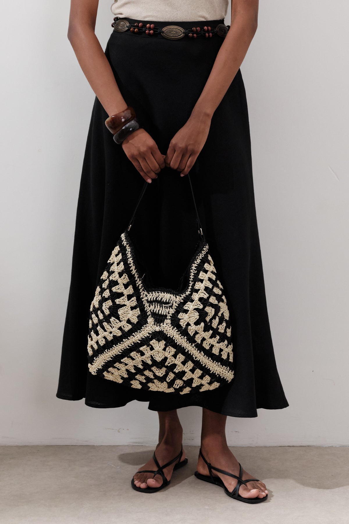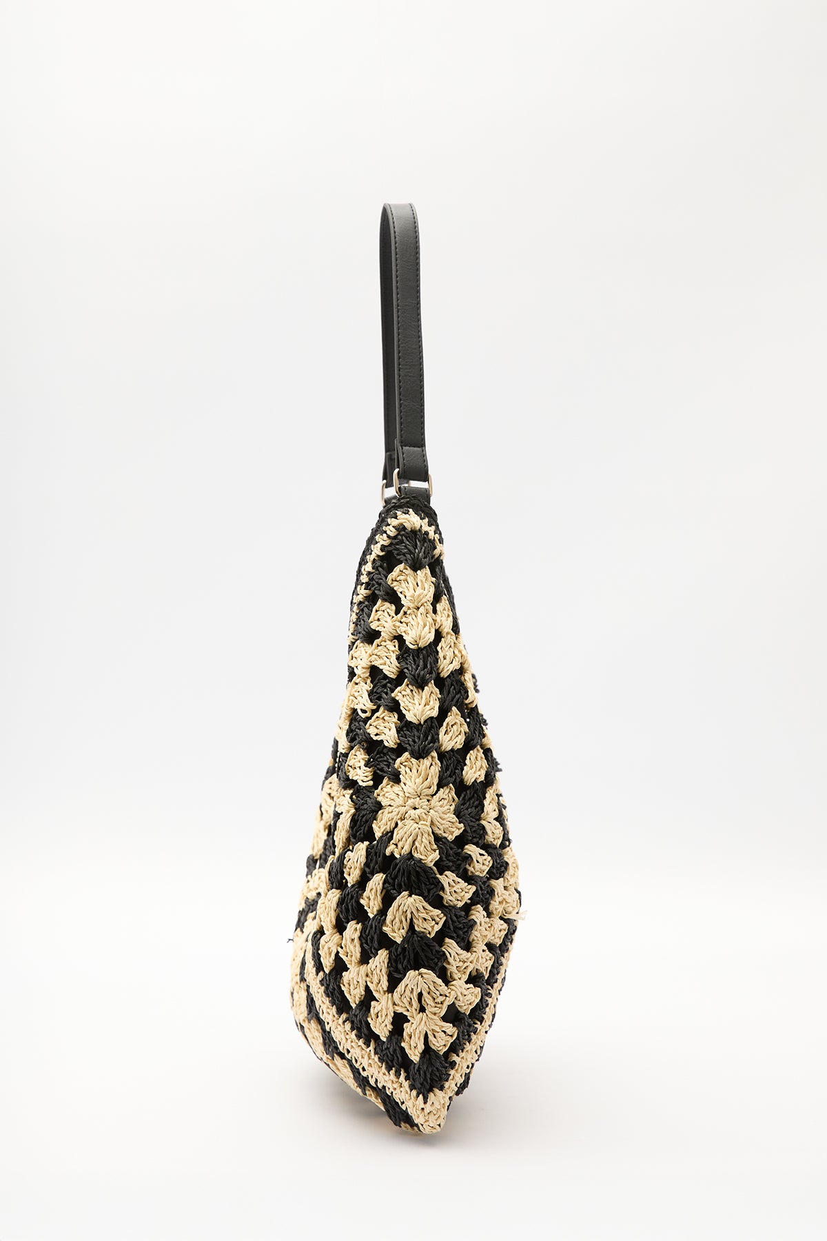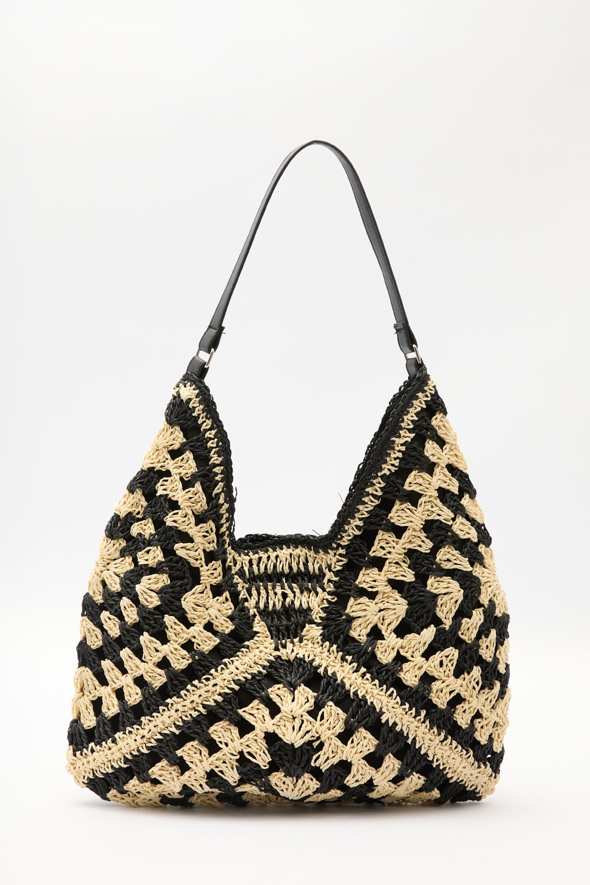 Patterned Straw Handbag Black