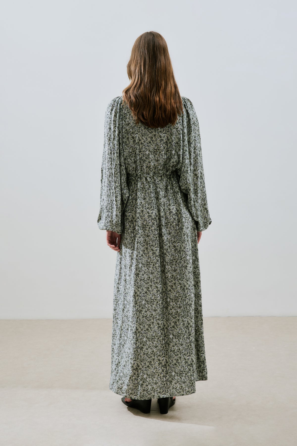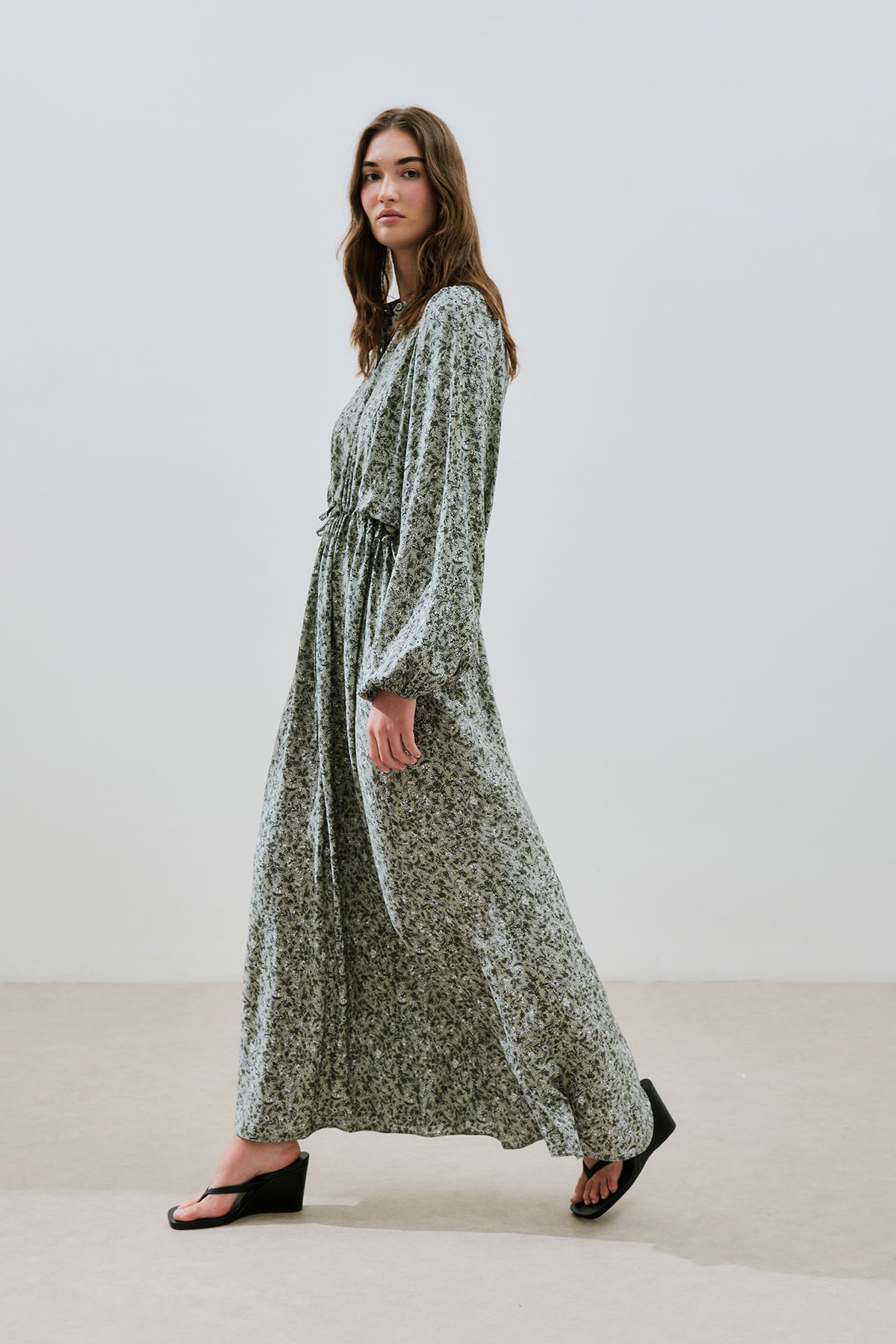 Patterned Viscose Tie Dress Lily Sage