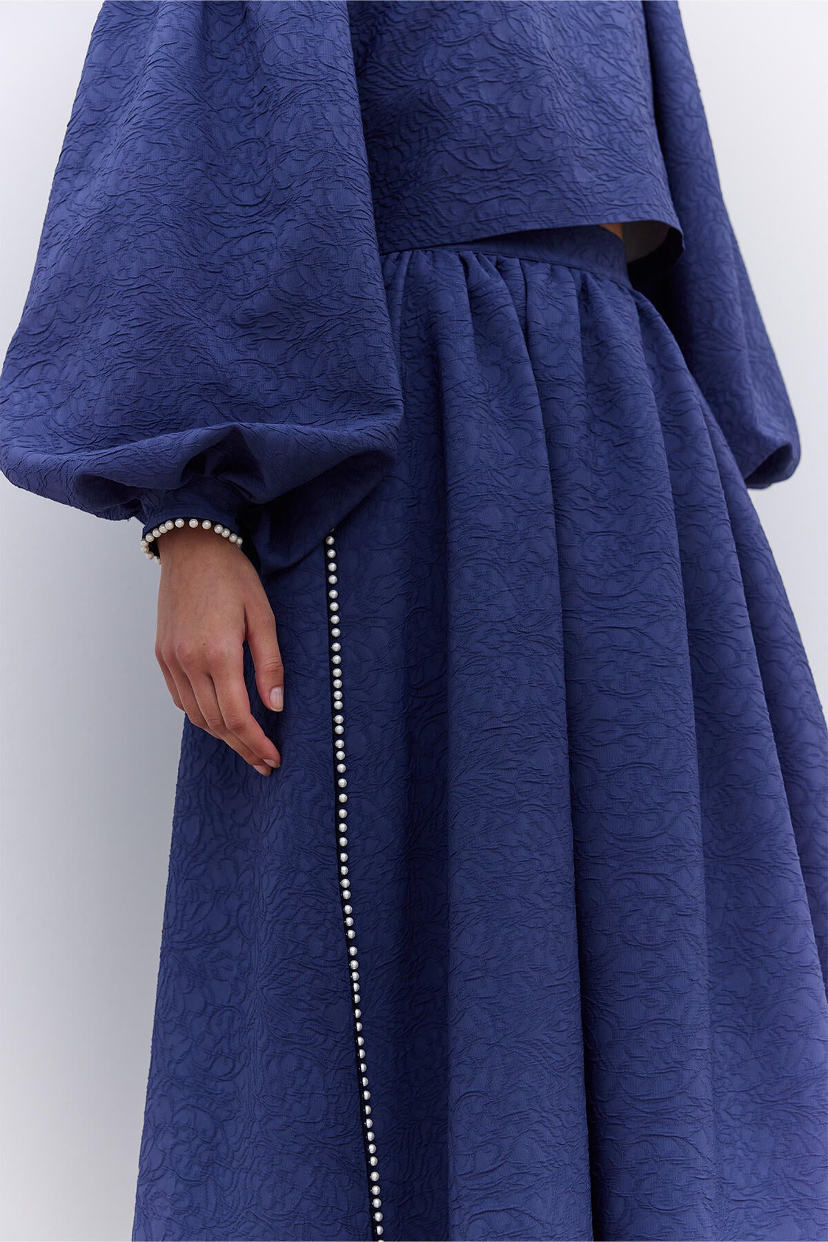 Pearl Embellished Jacquard Skirt Night Blue