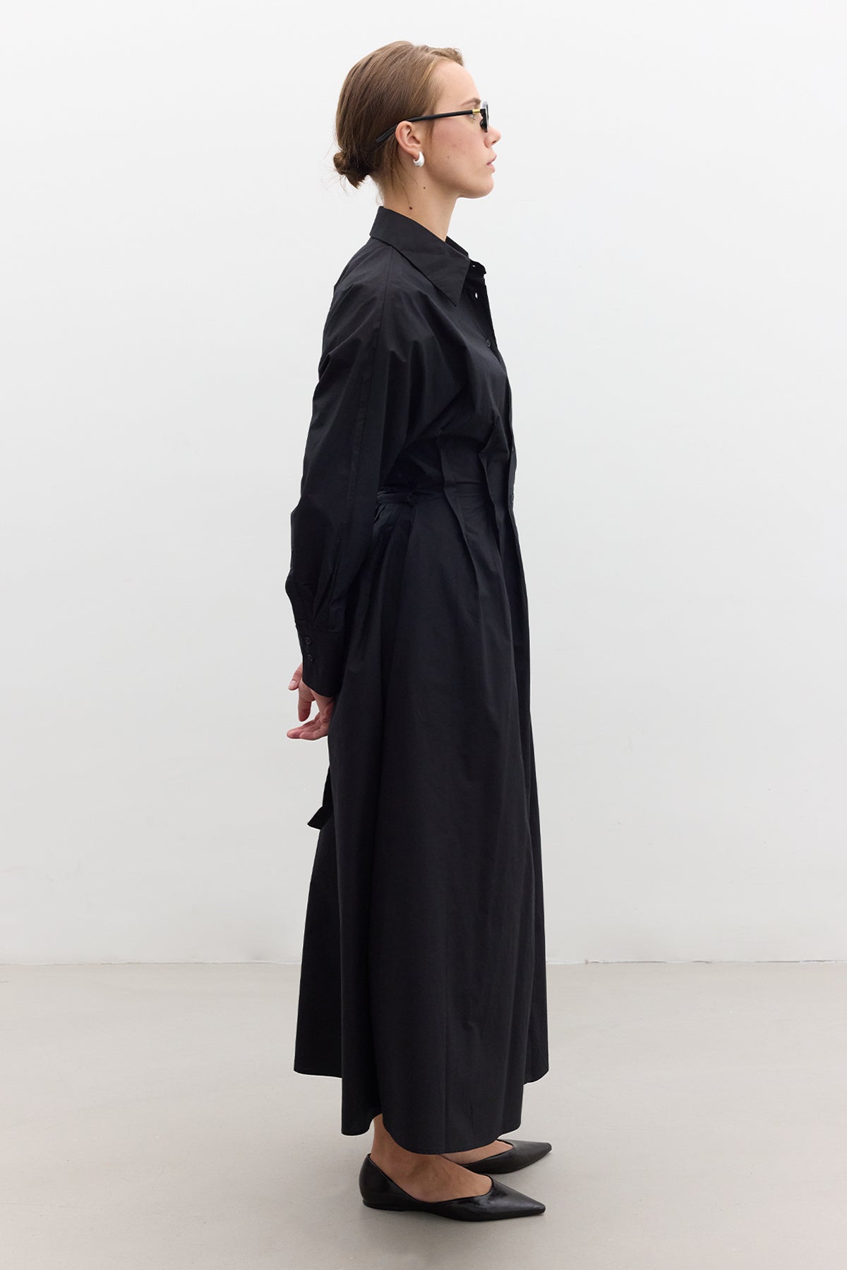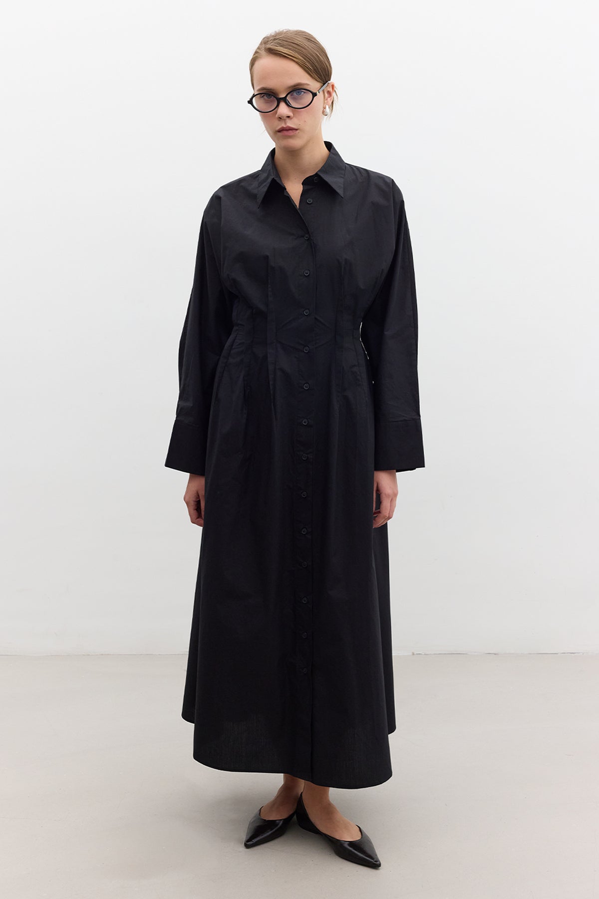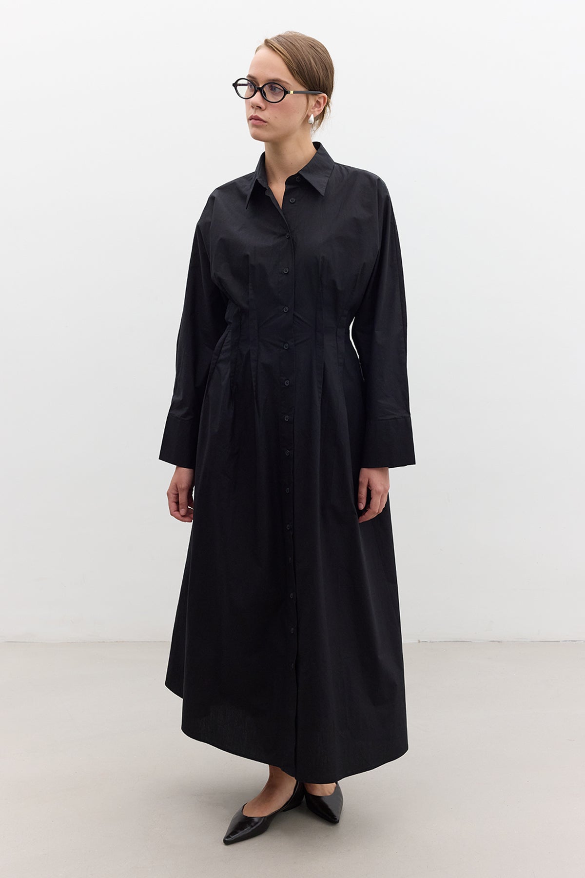 Pleated Detail Shirt Dress Black