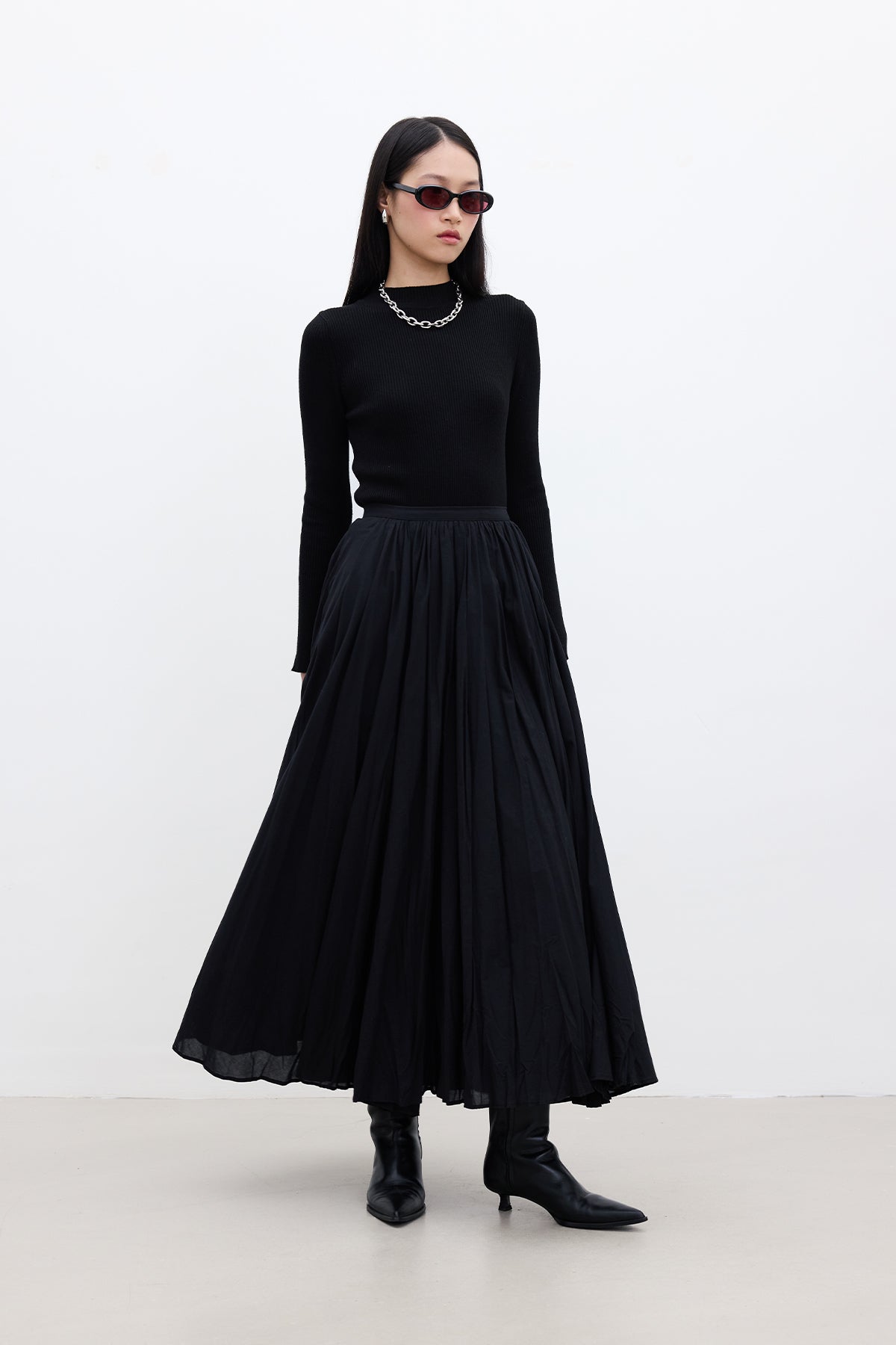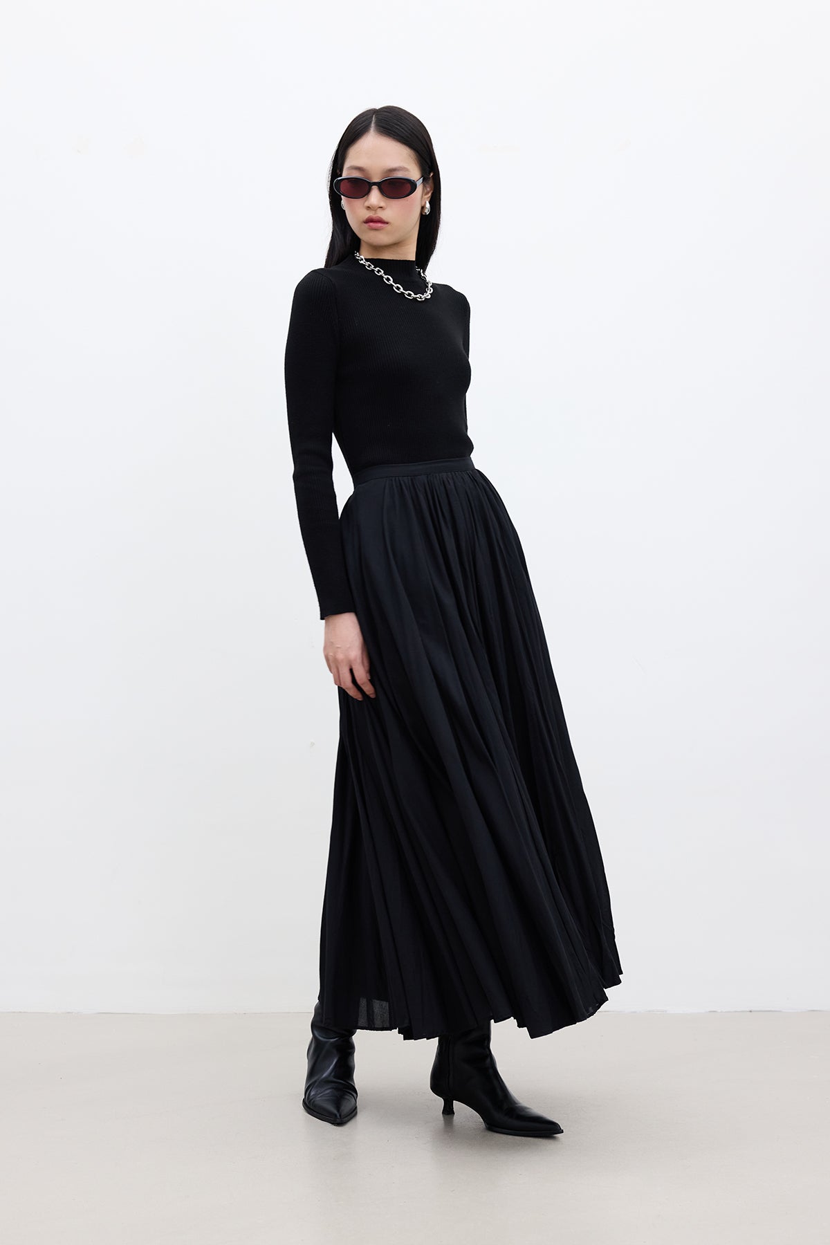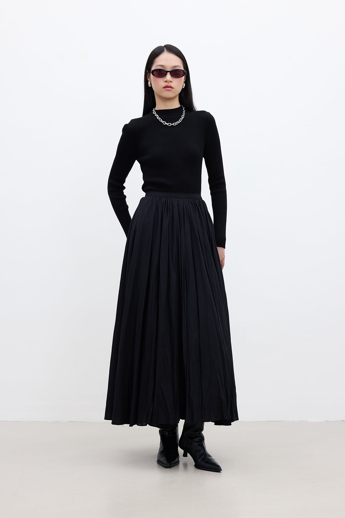 Pleated Maxi Skirt Black