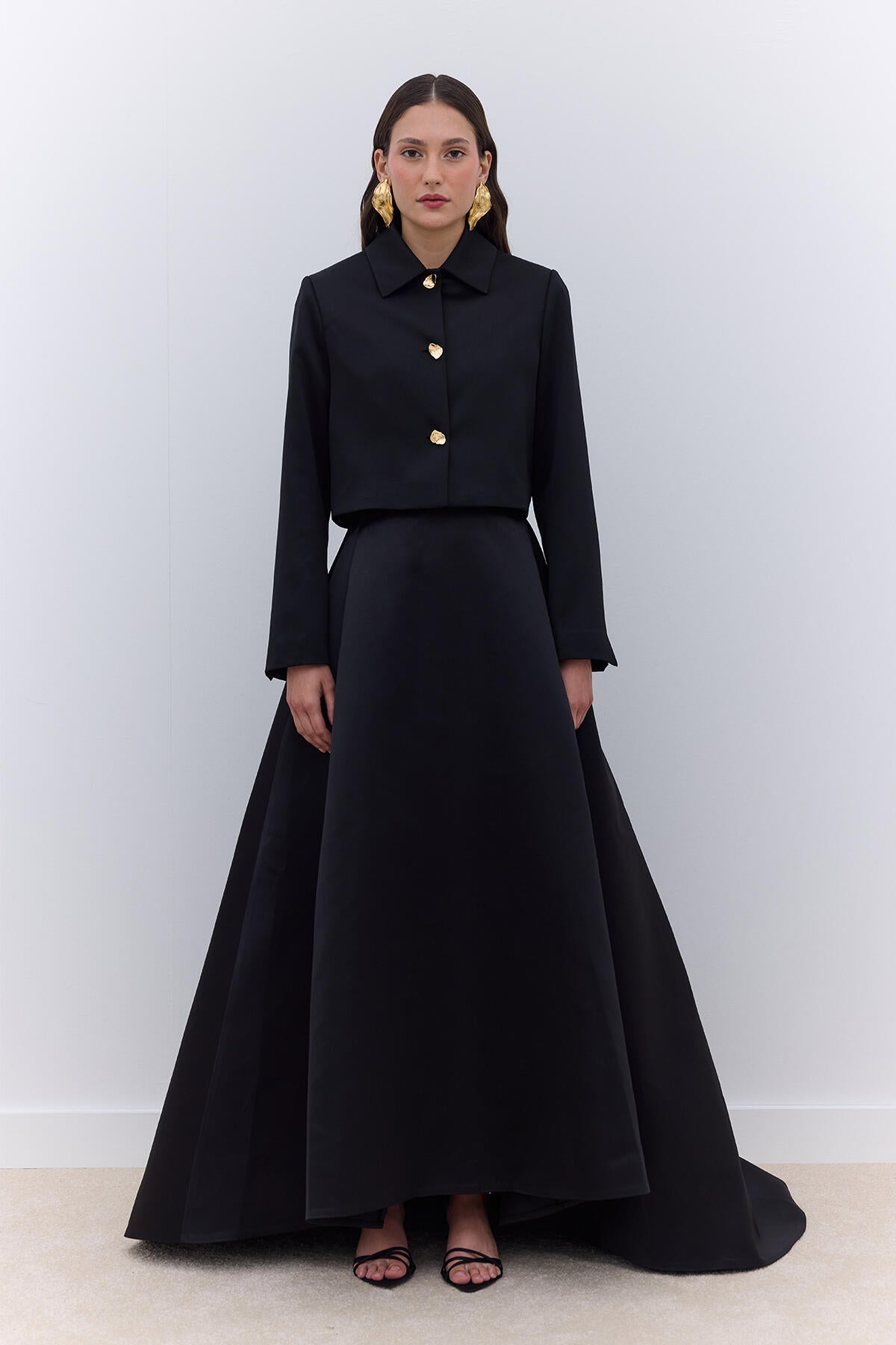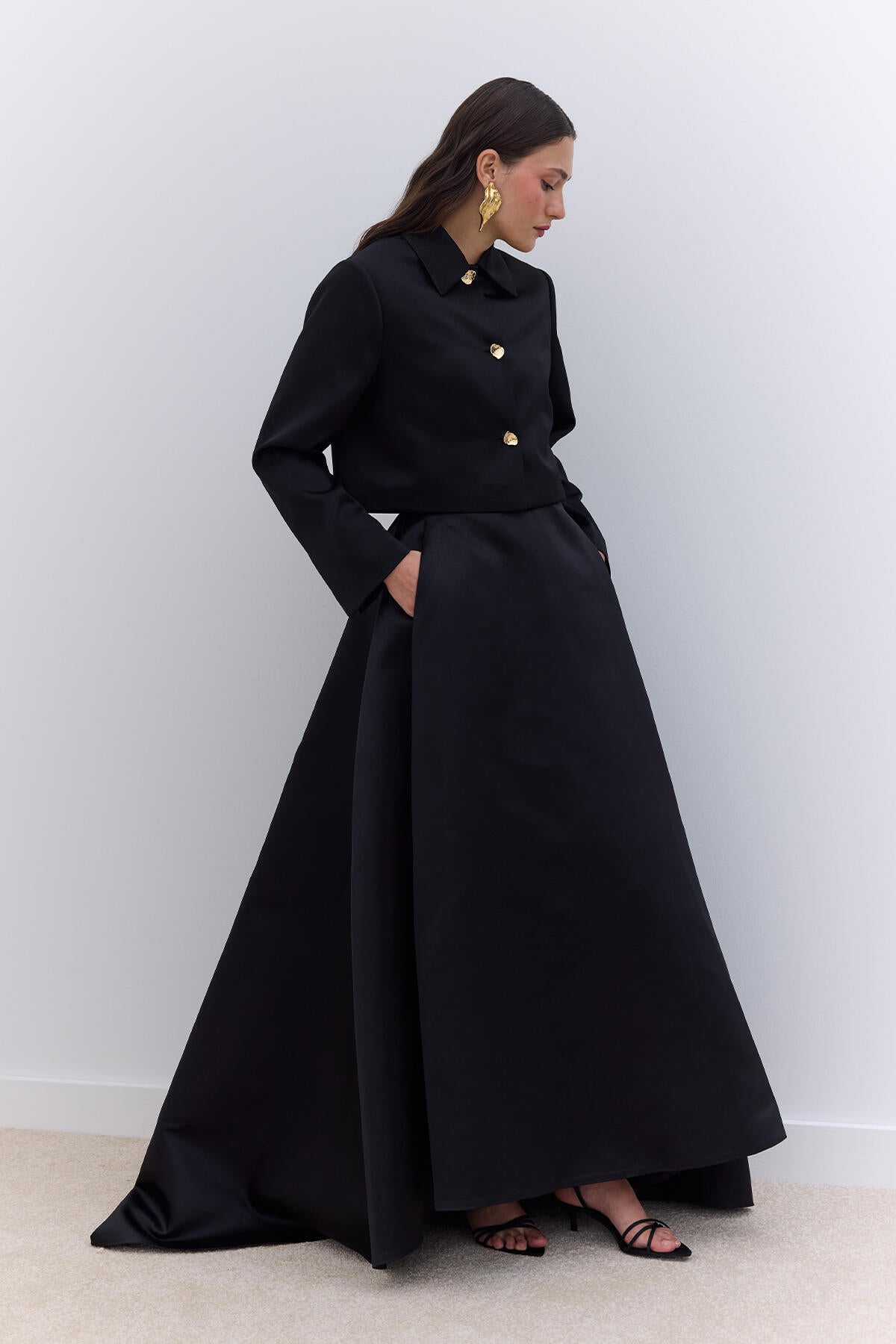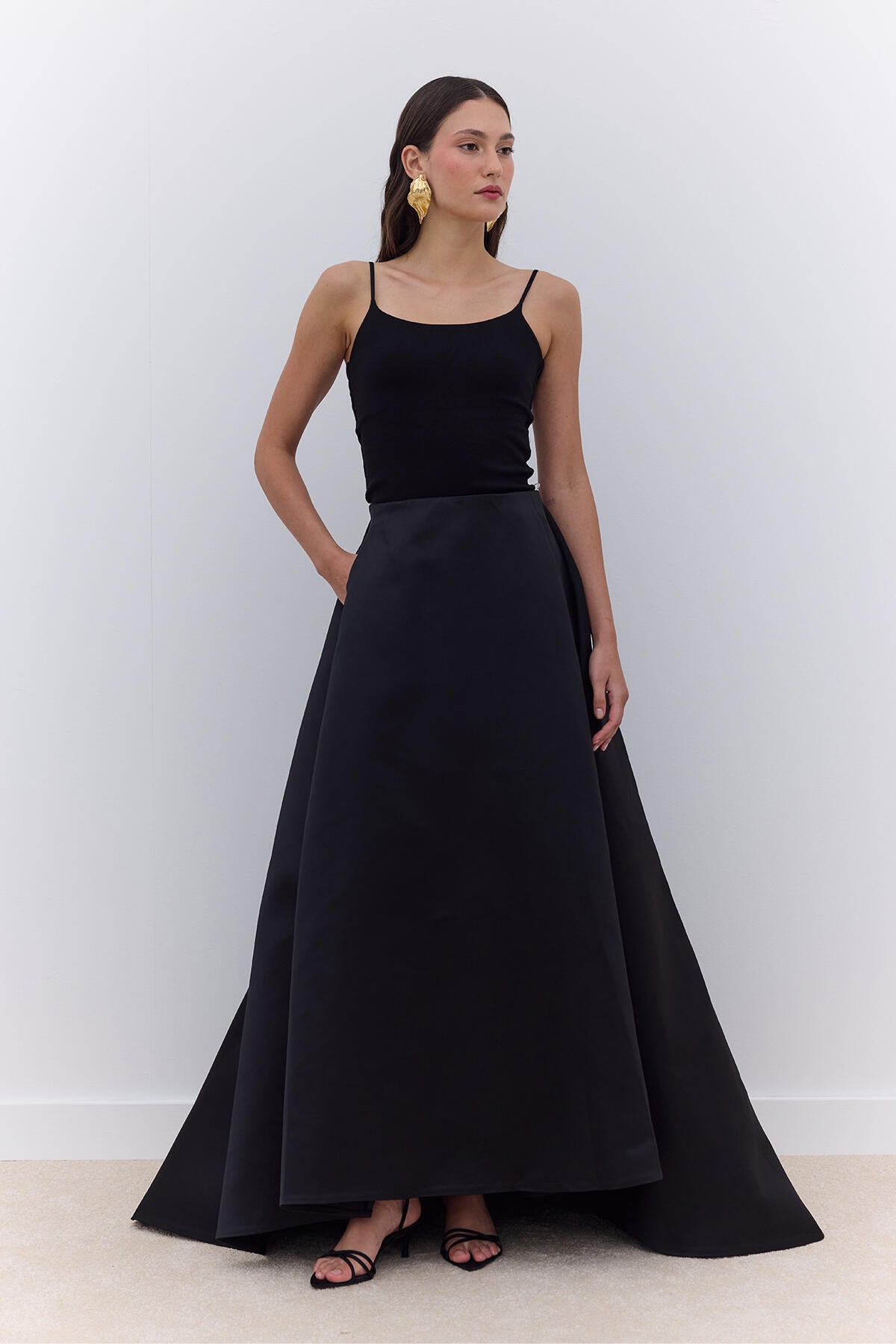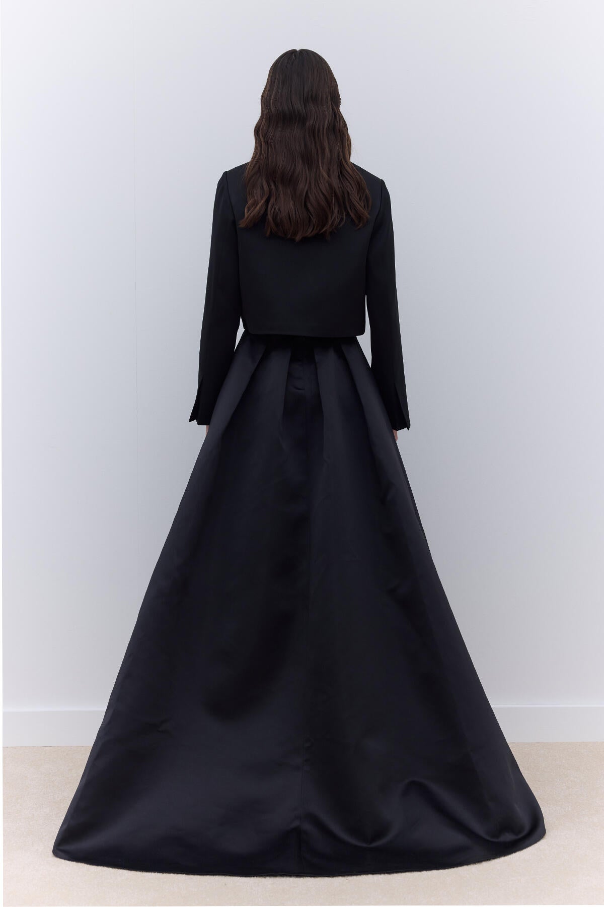 Pleated Satin Evening Skirt Black