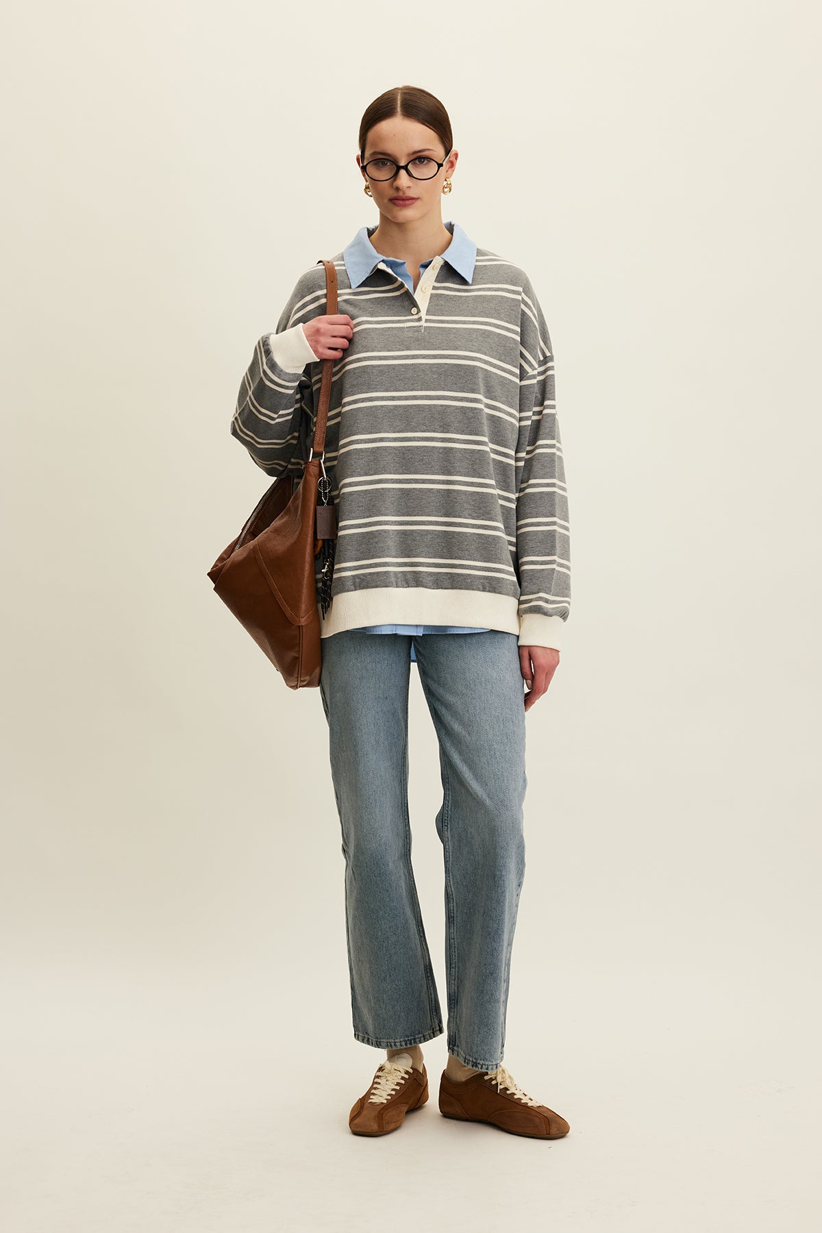 Polo Collar Oversized Sweatshirt Grey